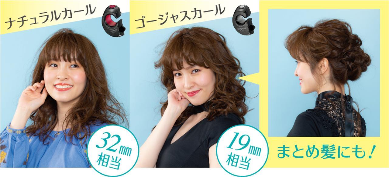 ・カールアイロン19,25,32mm相当の幅広いスタイルのカールを実現