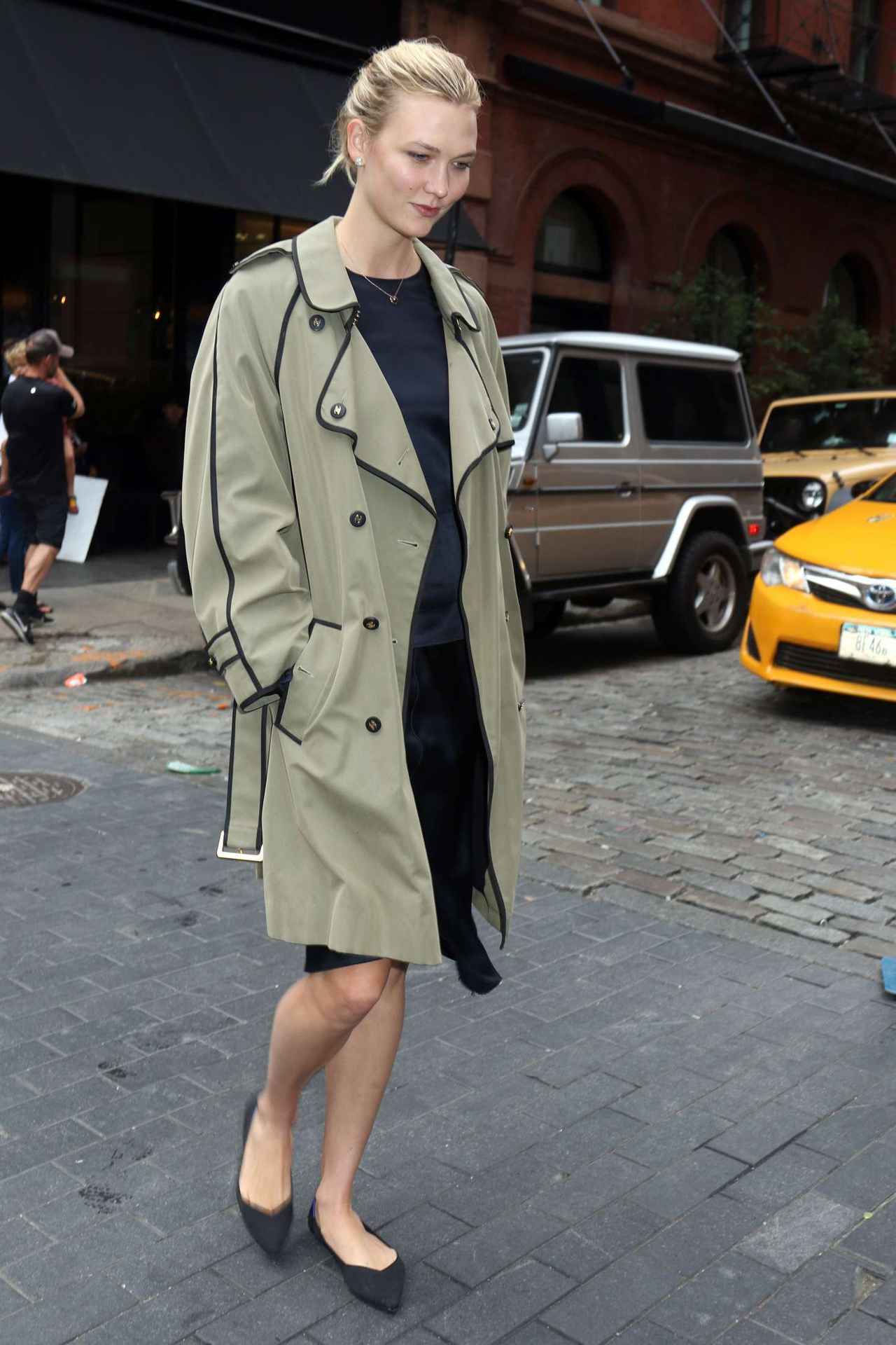 秋の定番人気のトレンチコートだけど、人と被りたくないおしゃれさんにオススメなのが、人気モデルのカ―リー・クロスが愛用するカーキカラーのトレンチ。シンプルなブラックのワンピースにトレンチを羽織り、フラットシューズを合わせただけの身軽なコーデでも、一味違ったカーキカラーでスタイリッシュな装いに。