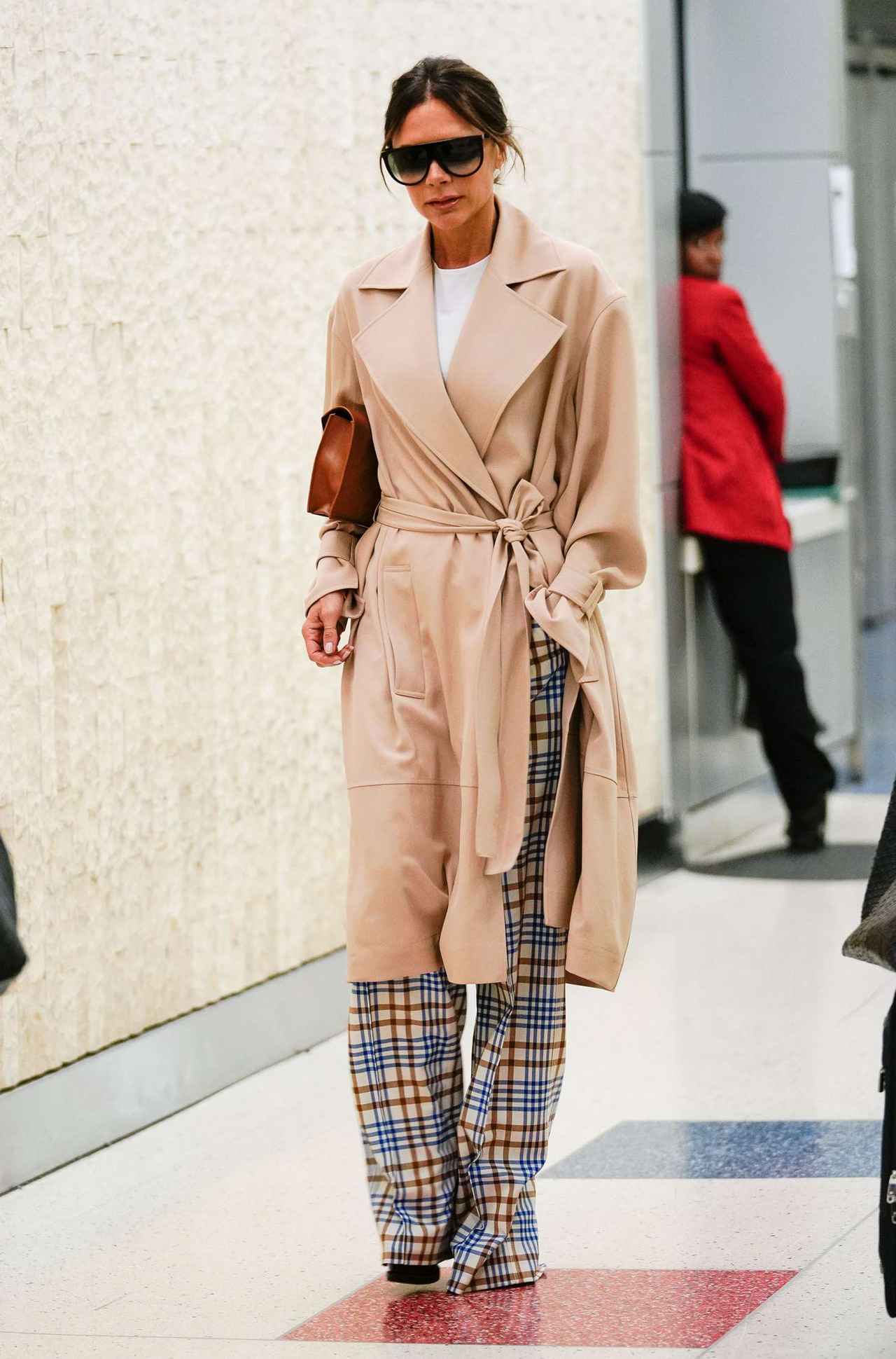 クールな着こなしに定評があり、人気ファッションデザイナーとしても活躍するヴィクトリア・ベッカムは、チェックプリントのトラウザーに、ここ数年人気のソフトな質感のトレンチコートを愛用。