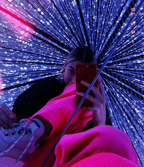 10月9日にヘイリー・ボールドウィンがインスタグラムにアップした、チームラボ ボーダレスでの写真。©Hailey Baldwin