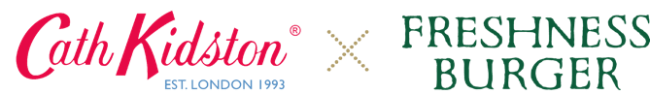 こちらのスペシャルメニューはキャス キッドソン デザインのハンバーガー袋で提供される。(数量限定、なくなり次第終了。)