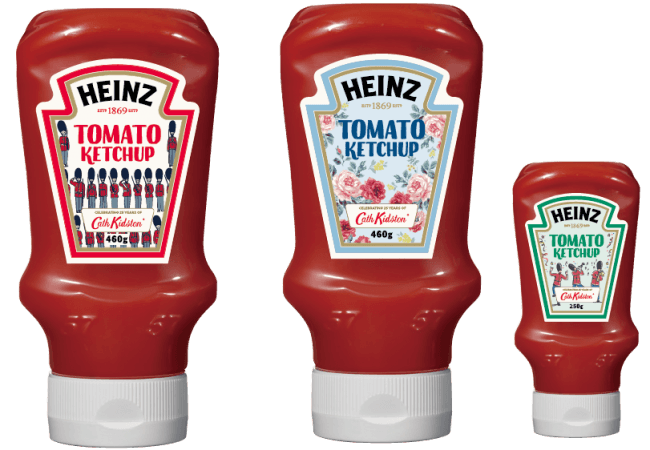 コラボレーションボトルには、キャス キッドソンを代表するシグネチャープリントである「ガーズ(近衛兵)」をはじめ、1993年ブランドスタート当初のオリジナルプリントである「アンティークローズ」と創立25周年を記念した「ガーズ&ゲスト」をフィーチャーした3つのプリントがハインツの象徴であるキーストーンにデザインされ登場。