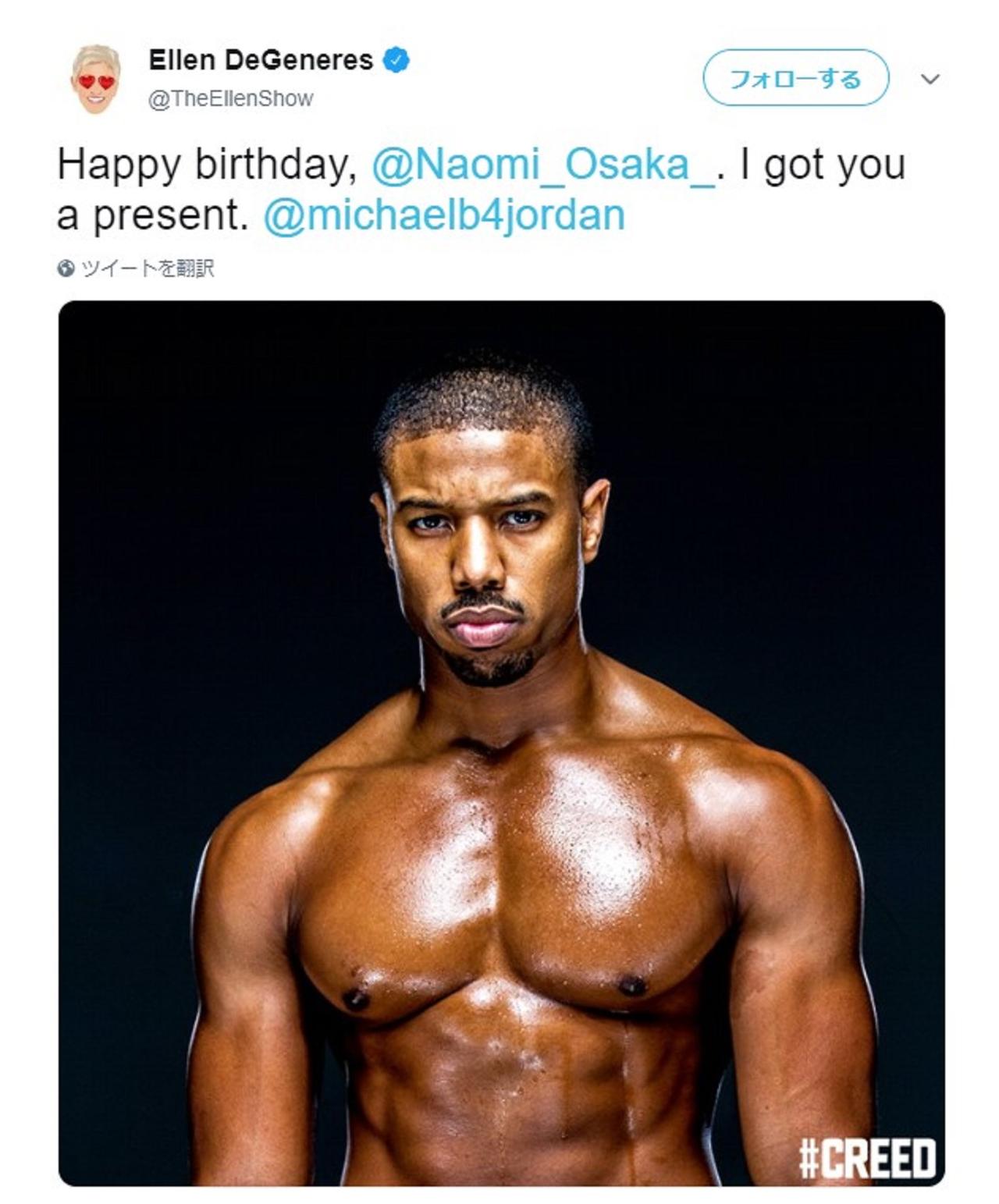 この一件から1カ月ほどがたった大坂選手の誕生日当日、エレンが大坂選手に宛てて、ツイッターで「なおみ、お誕生日おめでとう。これは私からのプレゼント」とバキバキに鍛え上げられたマイケルの上半身裸の写真を投稿。
