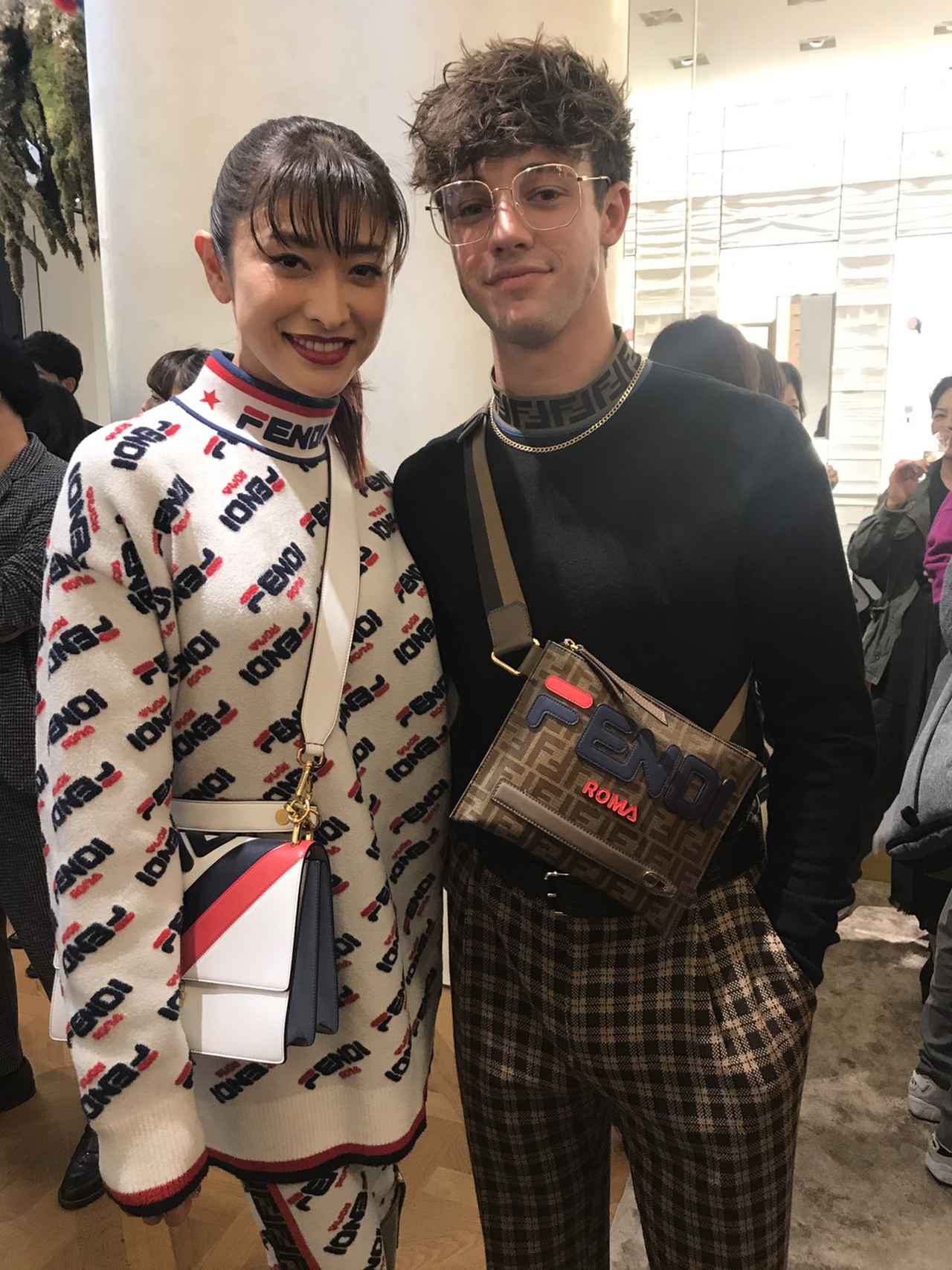 「フェンディ マニア」を象徴するブルー、イエロー、レッドといったアイコニックな色を基調に、アーティストのヘイ・レイリーがデザインを手がけてブランドが再解釈したFENDI/FILA ロゴがいたるところに散りばめられた店内を歩き回ったキャメロンは、渡辺直美、山田優、仲里依紗といった日本のセレブと交流。