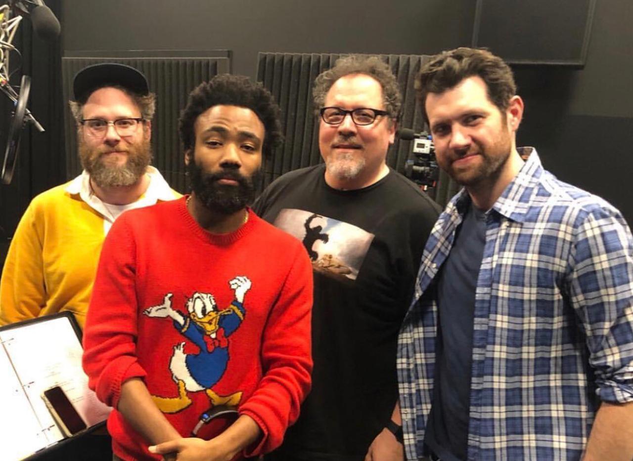 監督のジョン、シンバ役のドナルド・グローヴァー、ミーアキャットのティモン役のビリー・エイチュナー、その相方のプンバァ役のセス・ローゲンが並ぶ写真をジョンやセスがSNSに投稿。