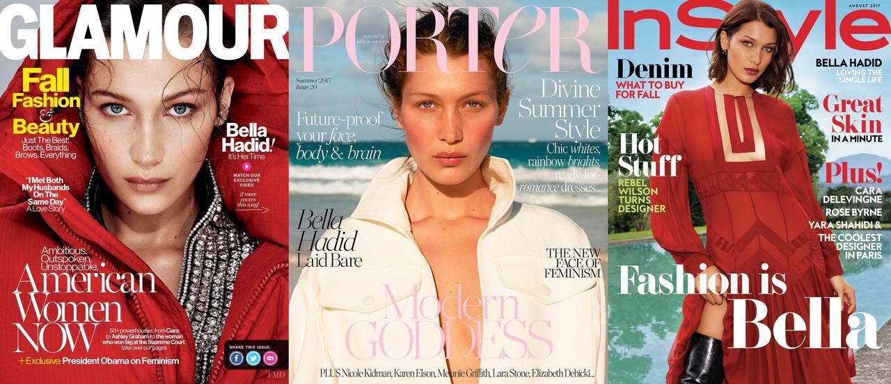1冊だけ、ベラではなく、ベラの姉で同じくモデルのジジ・ハディッドが表紙の雑誌が交ざっていたが、そのほかの3冊はベラが表紙の雑誌だった。