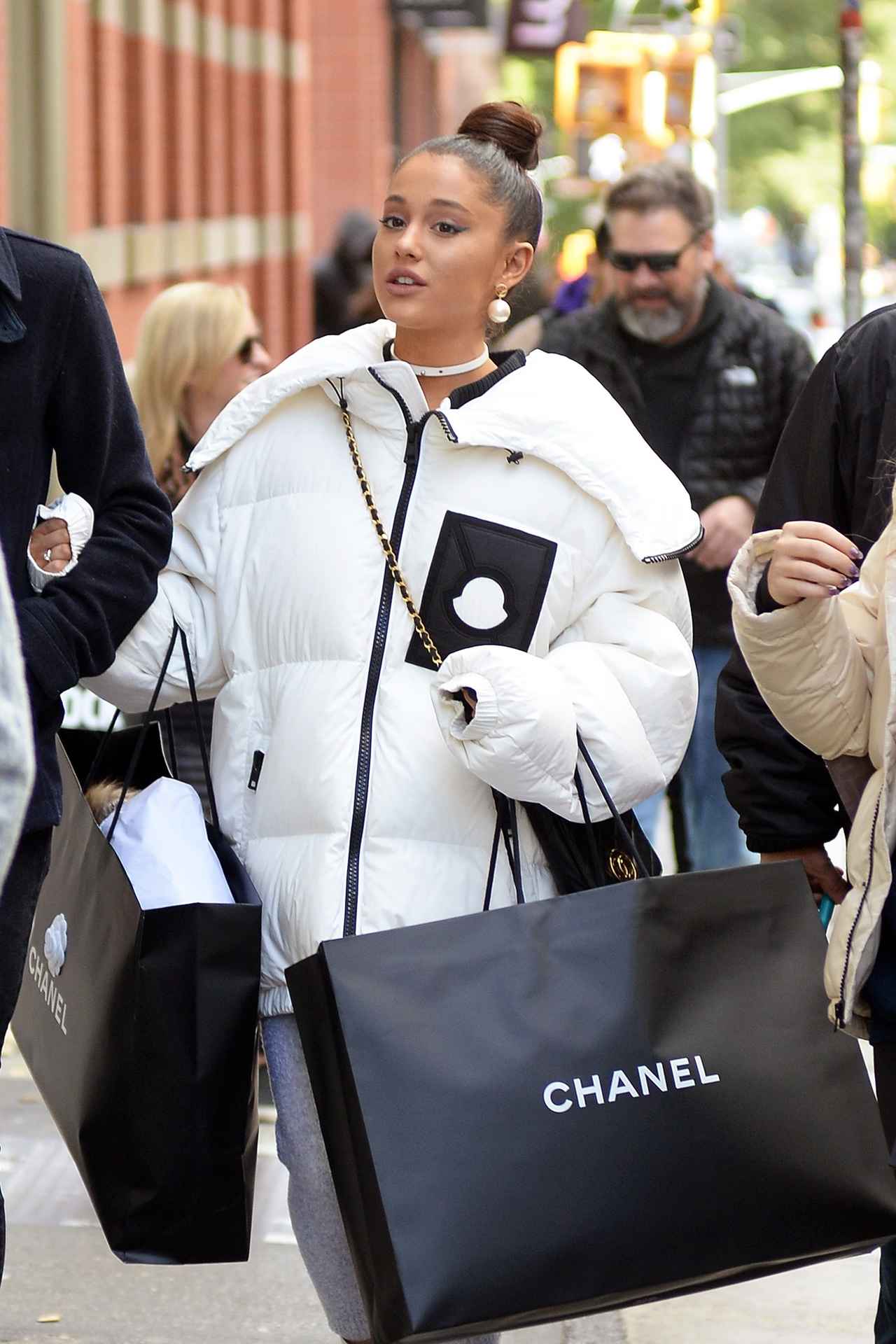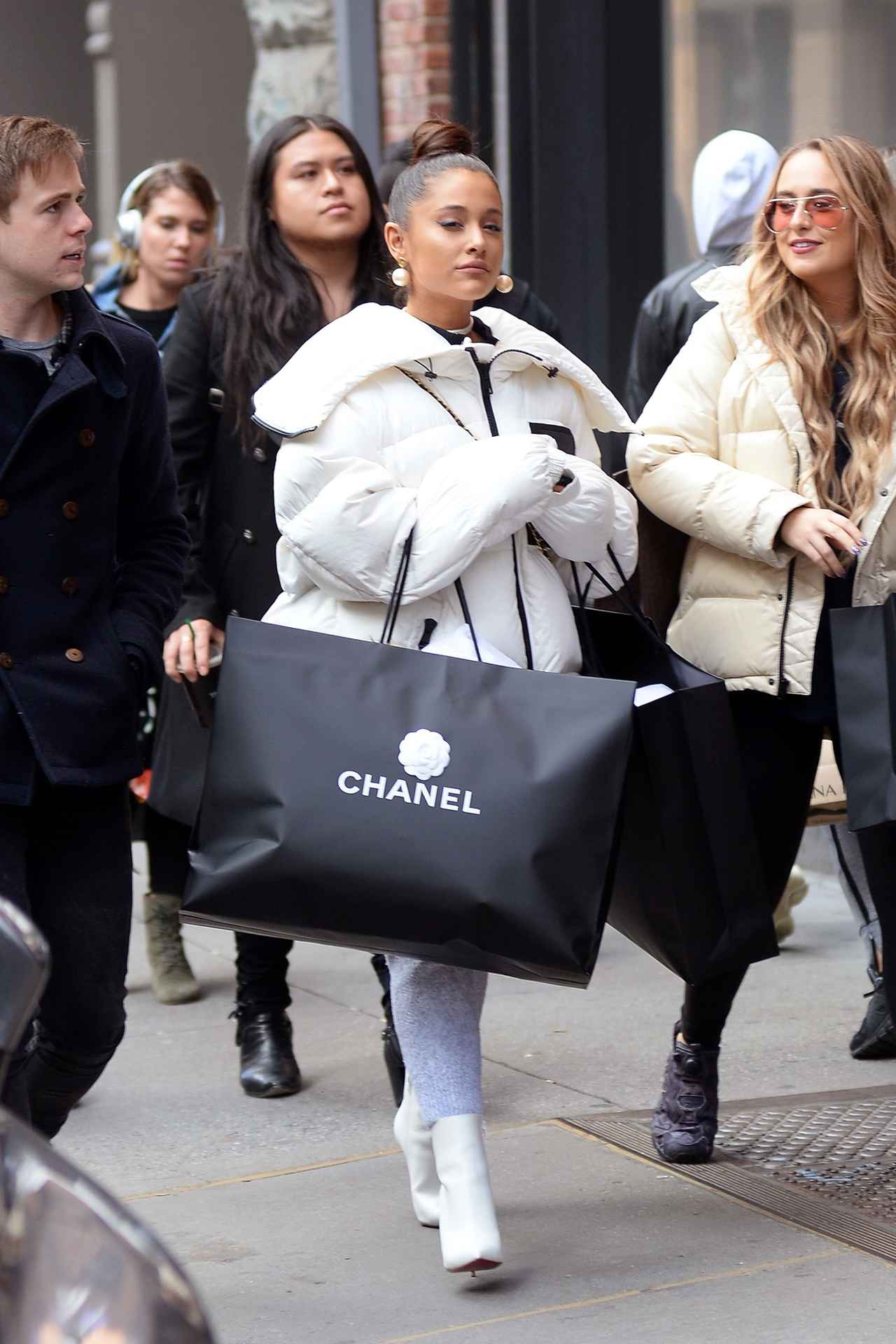 ソーホー地区にある有名ブランド、シャネルのブティックから出て来たアリアナの両手には、大きなサイズの紙袋が2つ。