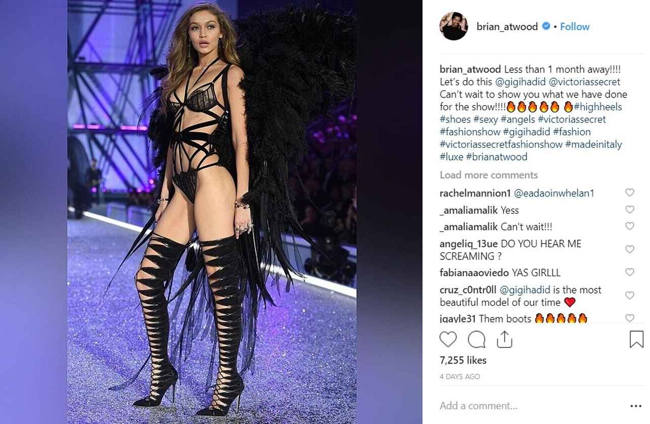 ブライアンが投稿した2016年のヴィクシー・ファッションショーに出演した際のジジの姿。この時のシューズもブライアンがデザインを手がけた。