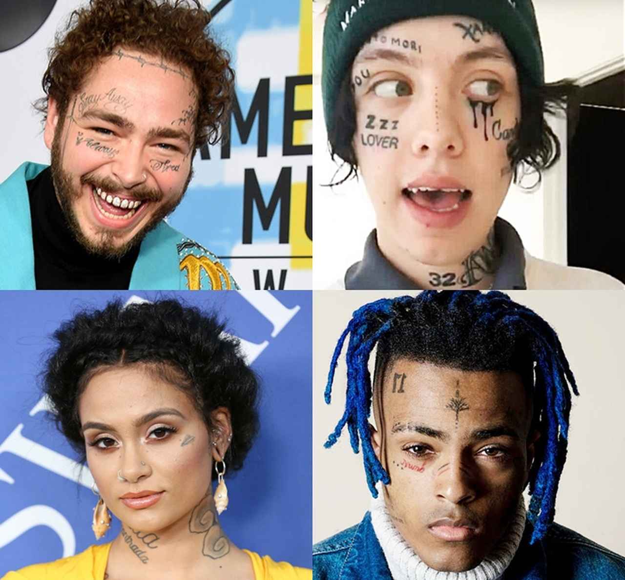 ラッパーのポスト・マローン、リル・ザン、7月に亡くなったXXXTentacion(エクスエクスエクステンタシオン)、そして歌姫のケラーニなど、ヒップホップ界の注目アーティストをマネて、1日限りの顔面タトゥーを楽しみたいという人が急増している。