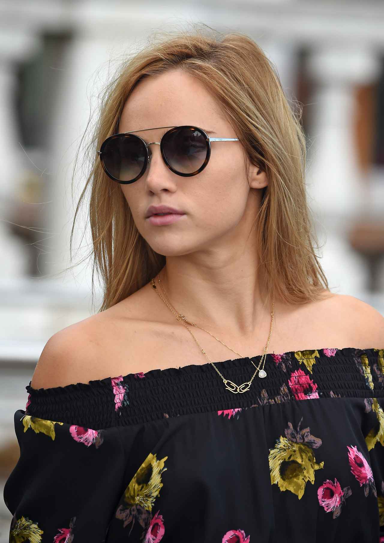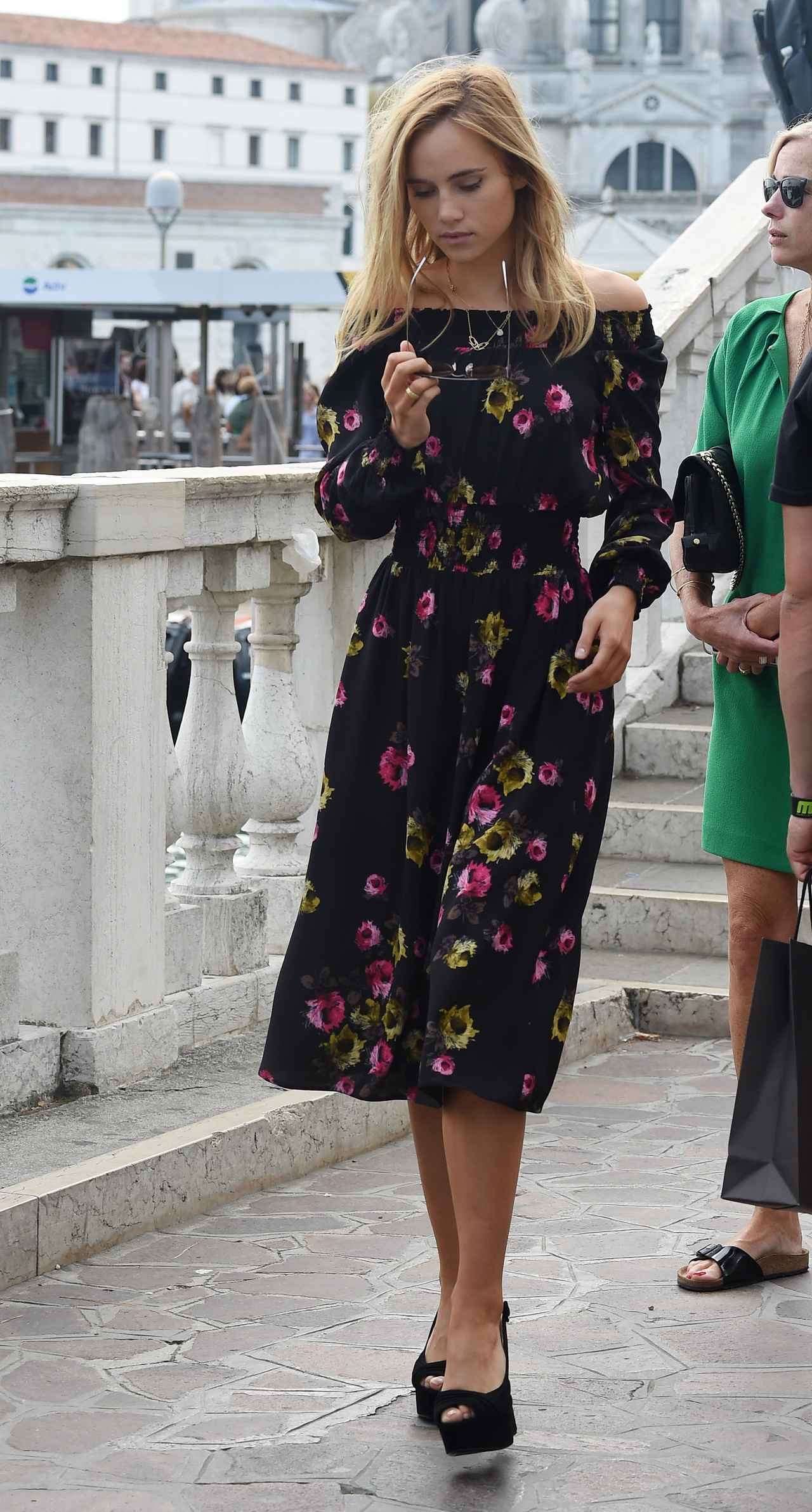 モデルから女優業までこなすスキ・ウォーターハウスは、冬らしいブラックのフローラルプリントのワンピースを愛用。