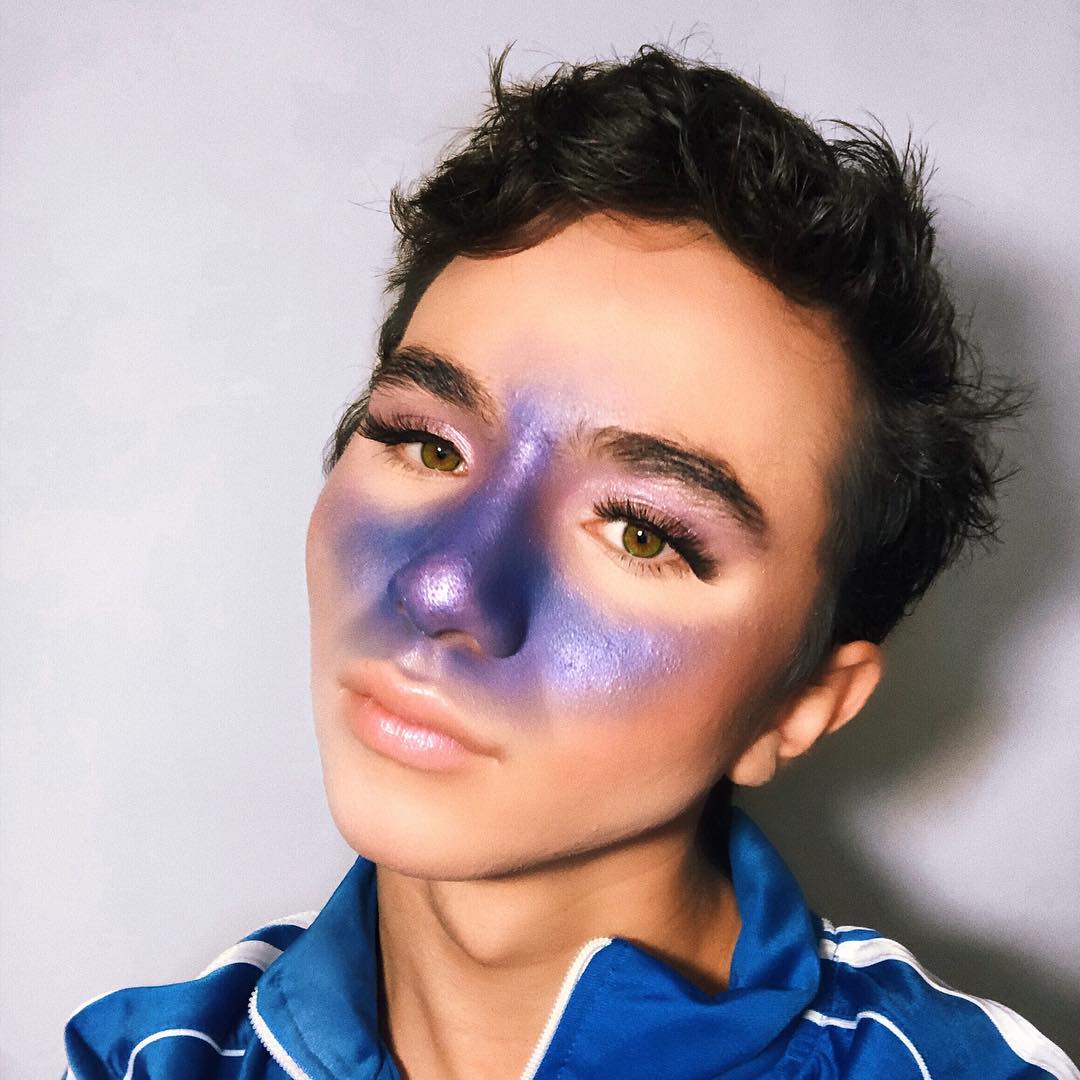 青く染まった鼻にマッチするように、アイメイクをパープル系にしたり、カラコンでブルー系の瞳にしたりして、統一感を持たせるのも◎。
