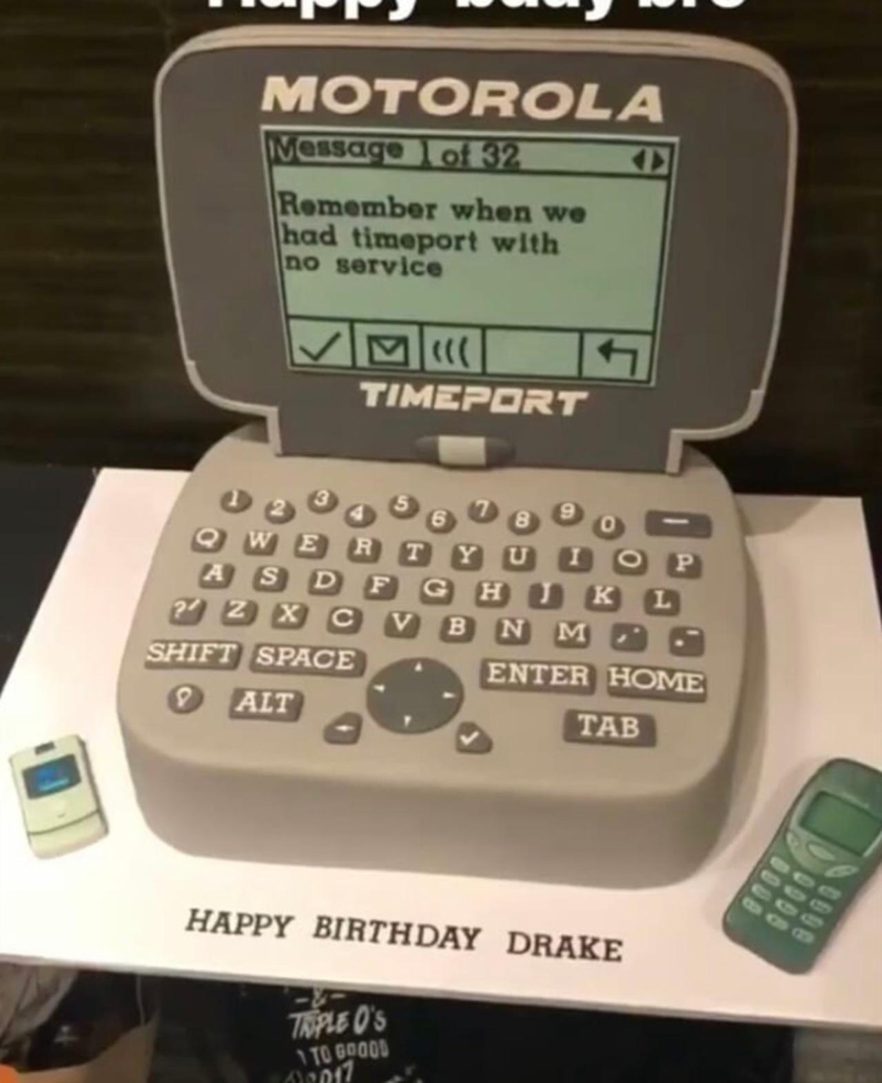 バースデーケーキは、モトローラ社の携帯電話をイメージ。