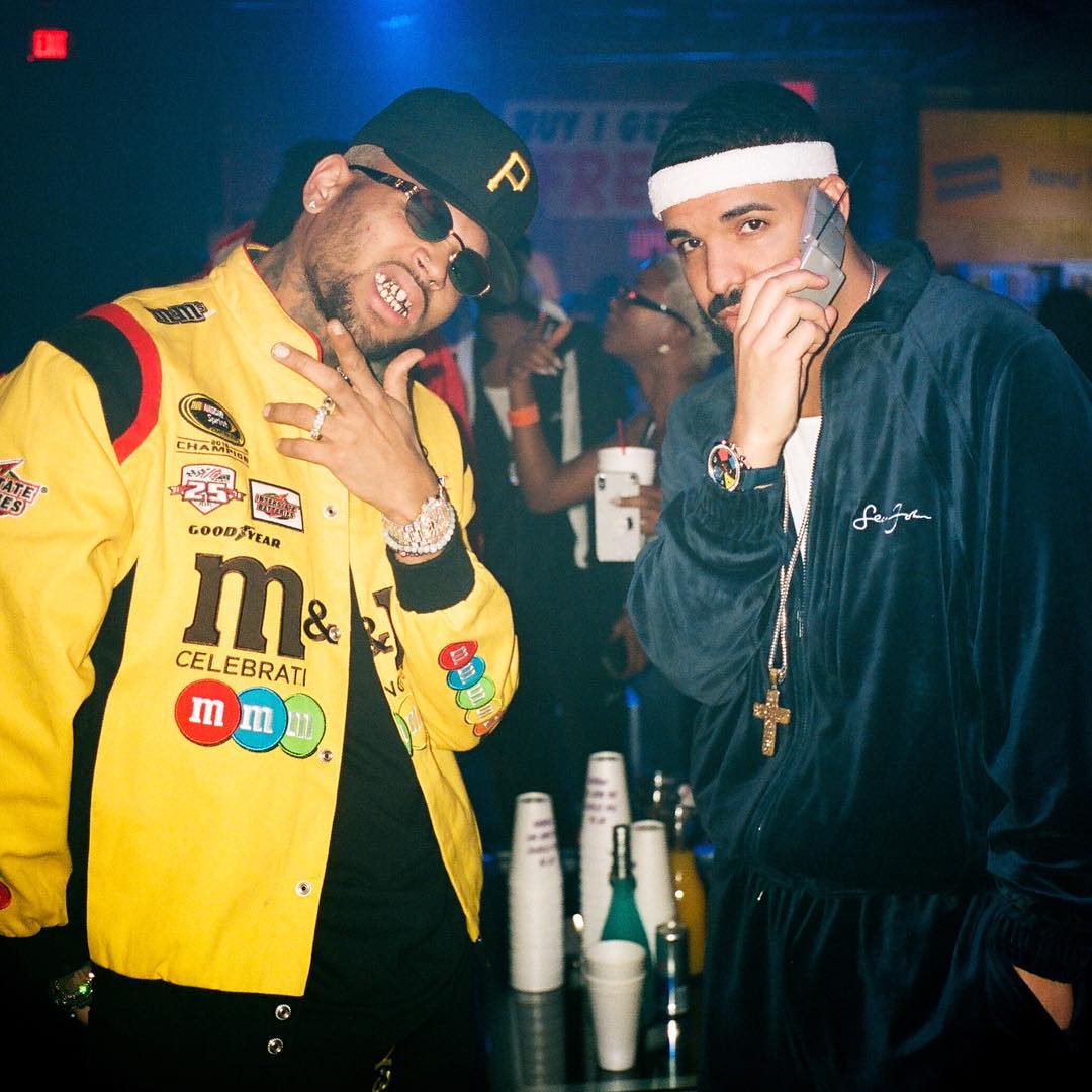 この写真でドレイクの隣にいるのは、クリス・ブラウン。元恋人のリアーナをめぐってドレイクと不仲が続いていると思われていたクリスもパーティーに出席。