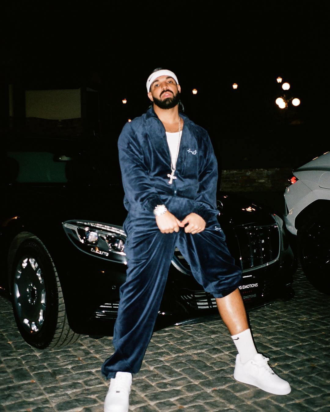 もちろんドレイクもひと昔前に流行ったファッションを着用して登場。