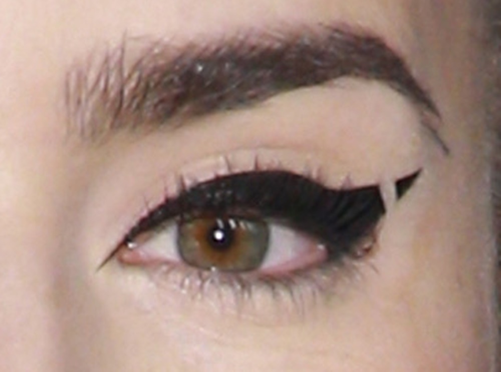 やり方は簡単。キャットアイにする時と要領はほとんど一緒だが、目頭は少しオーバーさせてアイラインをひき、目尻は最後にはね上がらせる手前でわずかな“隙間”を開けるのがポイント。