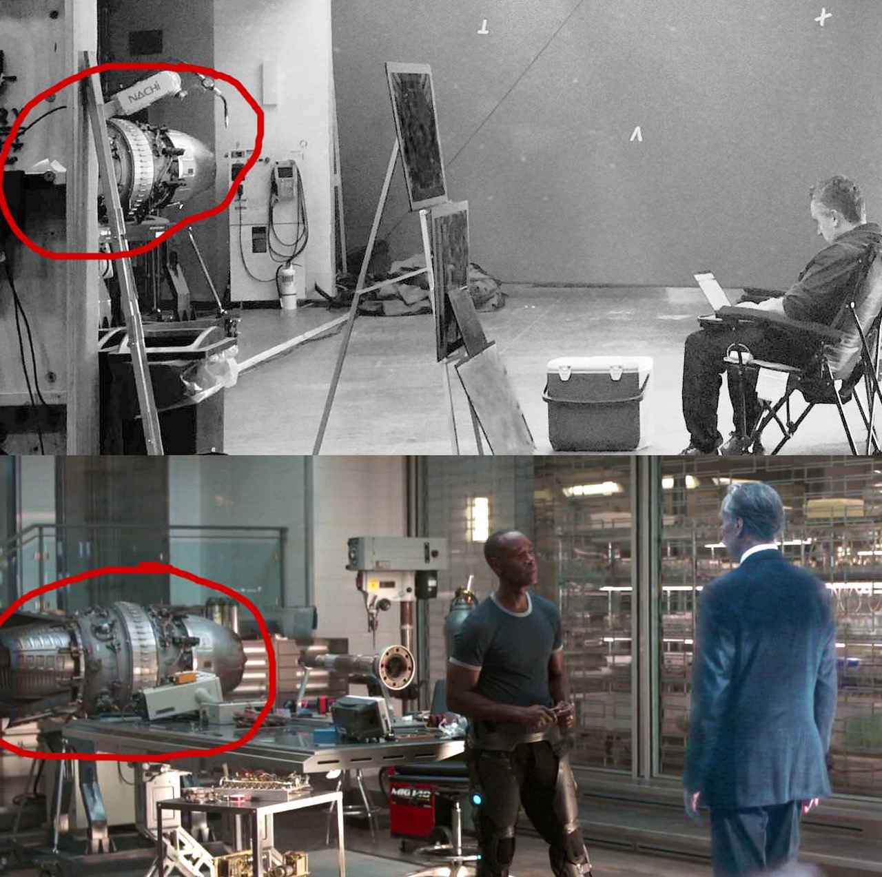 1枚目は、「よく見て…」というコメントとともに投稿された撮影現場の写真。この写真の左奥に写るロケットは、『アベンジャーズ/インフィニティ・ウォー』で登場したロケットだと言われている。