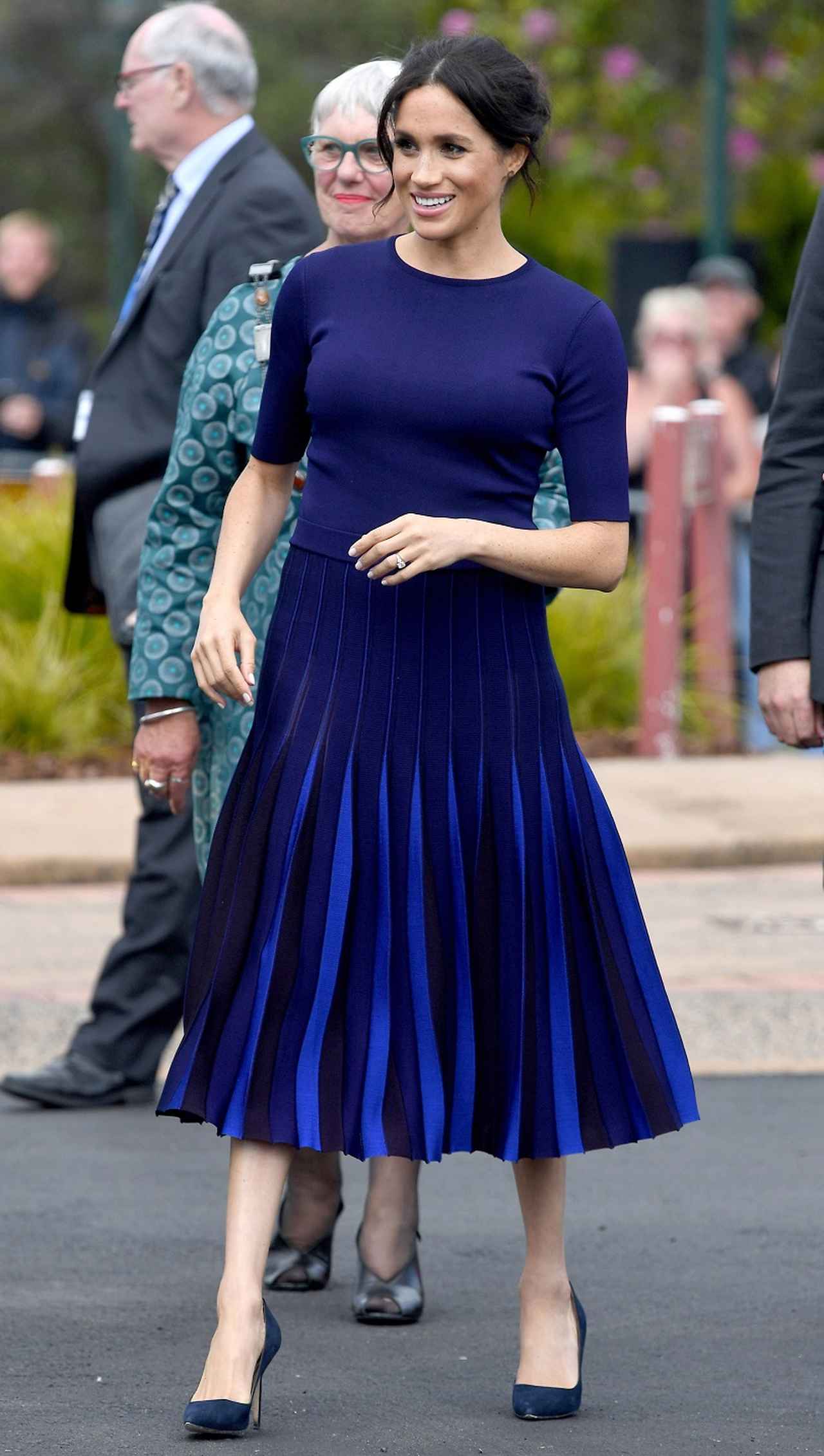 この日、3回の衣装替えを行ったメーガン妃の着こなしのなかには、イタリア発の有名ブランドGivenchy(ジヴァンシィ)がカスタムメイドであつらえたロイヤルブルーの五分袖トップスとプリーツスカートを合わせた上品なルックも。
