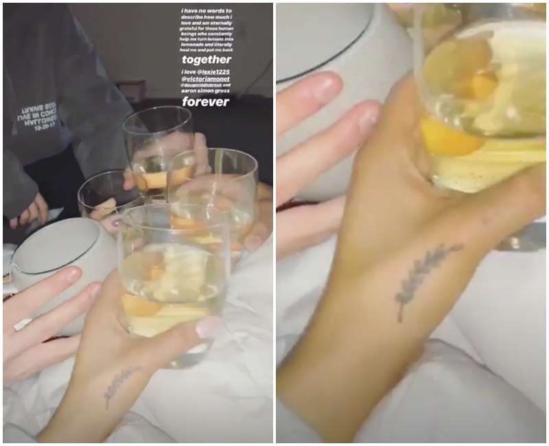 ピートとお揃いで入れた「REBORN」のタトゥーは、タトゥーのデザインで人気のフェザー(羽)もしくはラベンダーに変わっているのが確認できる。
