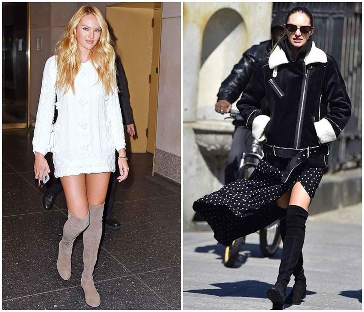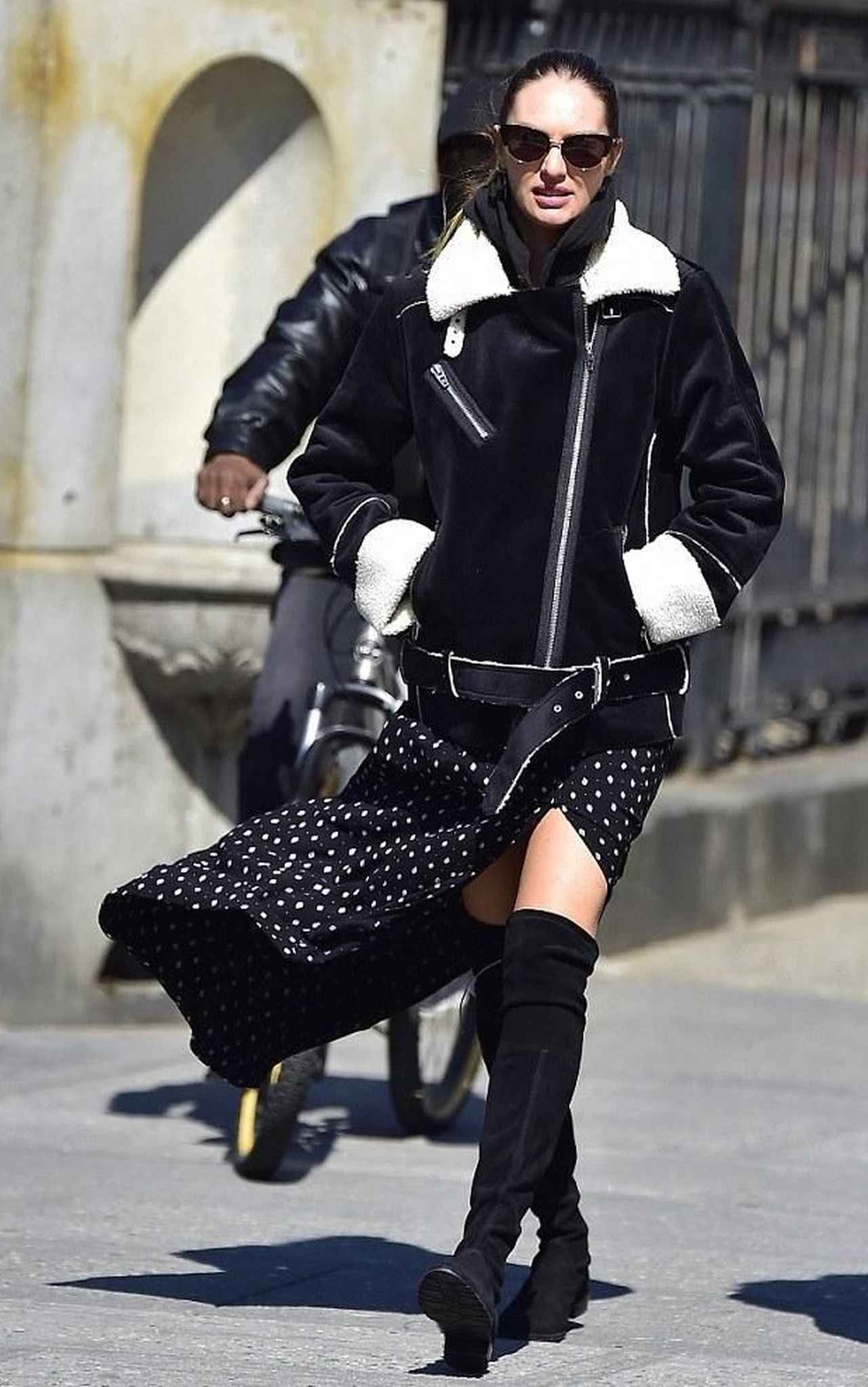 人気モデルのキャンディス・スワンポールは、キュートもクールもニーハイブーツでアクセント