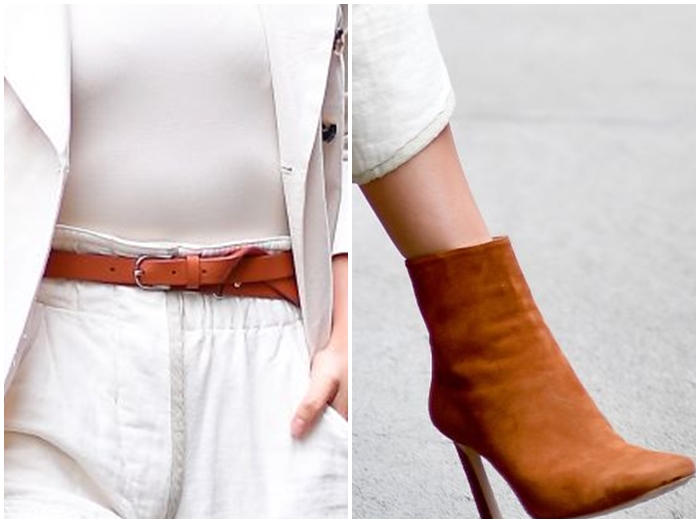 白×キャメルブラウンの洗練カラーは、冬におしゃれに見えるカラーリング! ベルトでキャメルブラウンを差し込むと、膨張色の白がキュッと締まって見えて細見え。ショートブーツでカラーをリンクさせれば、計算されたスタイリングでオシャレ度UP!