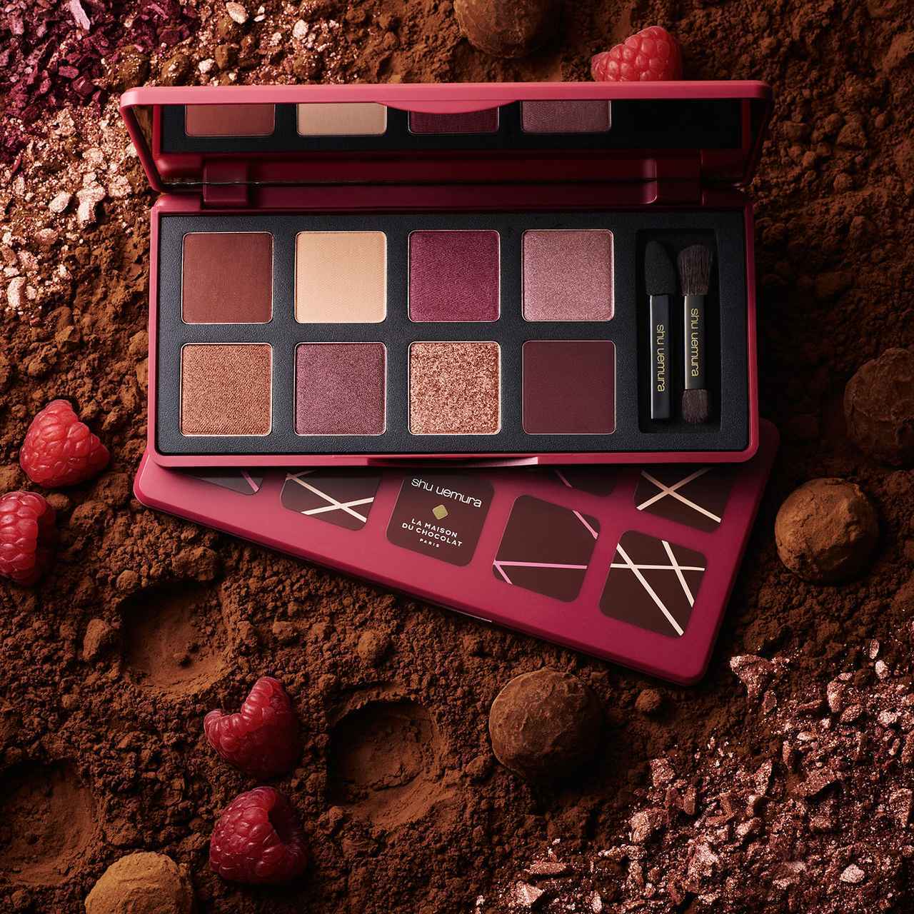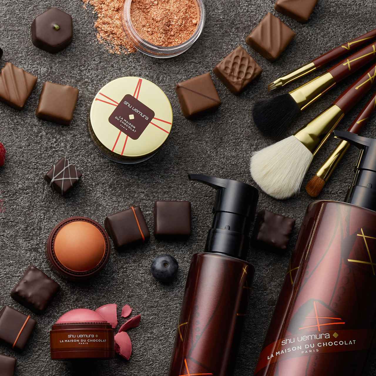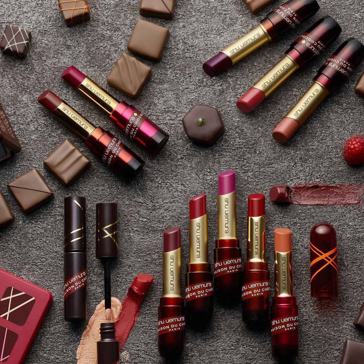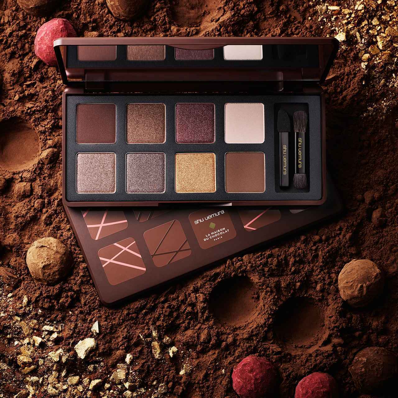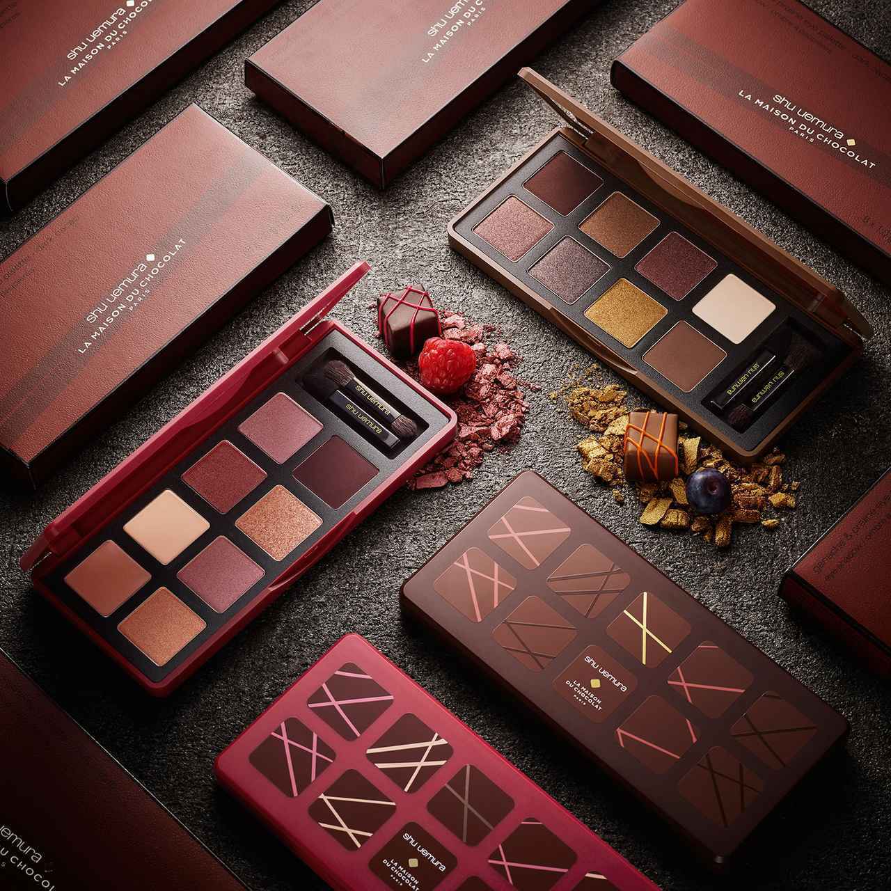 シュウ ウエムラ史上初となるフード系ブランドとのコラボという、革新的なコレクション「ラ・メゾン・デュ・ショコラ×シュウ ウエムラ」。