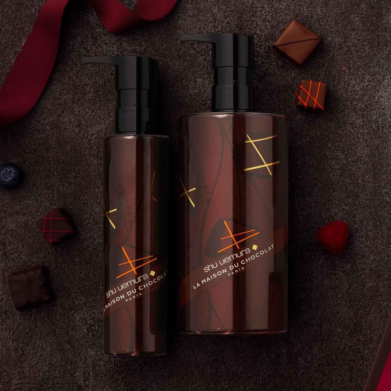 シュウ ウエムラの最高峰「アルティム8∞ スブリム ビューティ クレンジング オイル」も、チョコレートの世界観をまとったパッケージに変身。高級チョコレートのようなデザインは、スキンケアの時間もリッチな気分にしてくれそう!