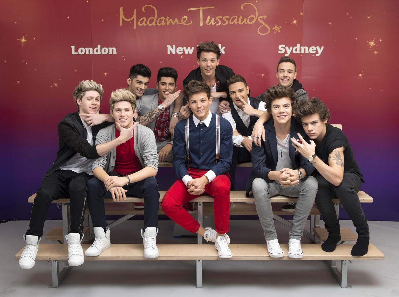 2013年、自分たちを象った蝋人形とともに楽しそうにポーズを決める1Dのメンバーたち。