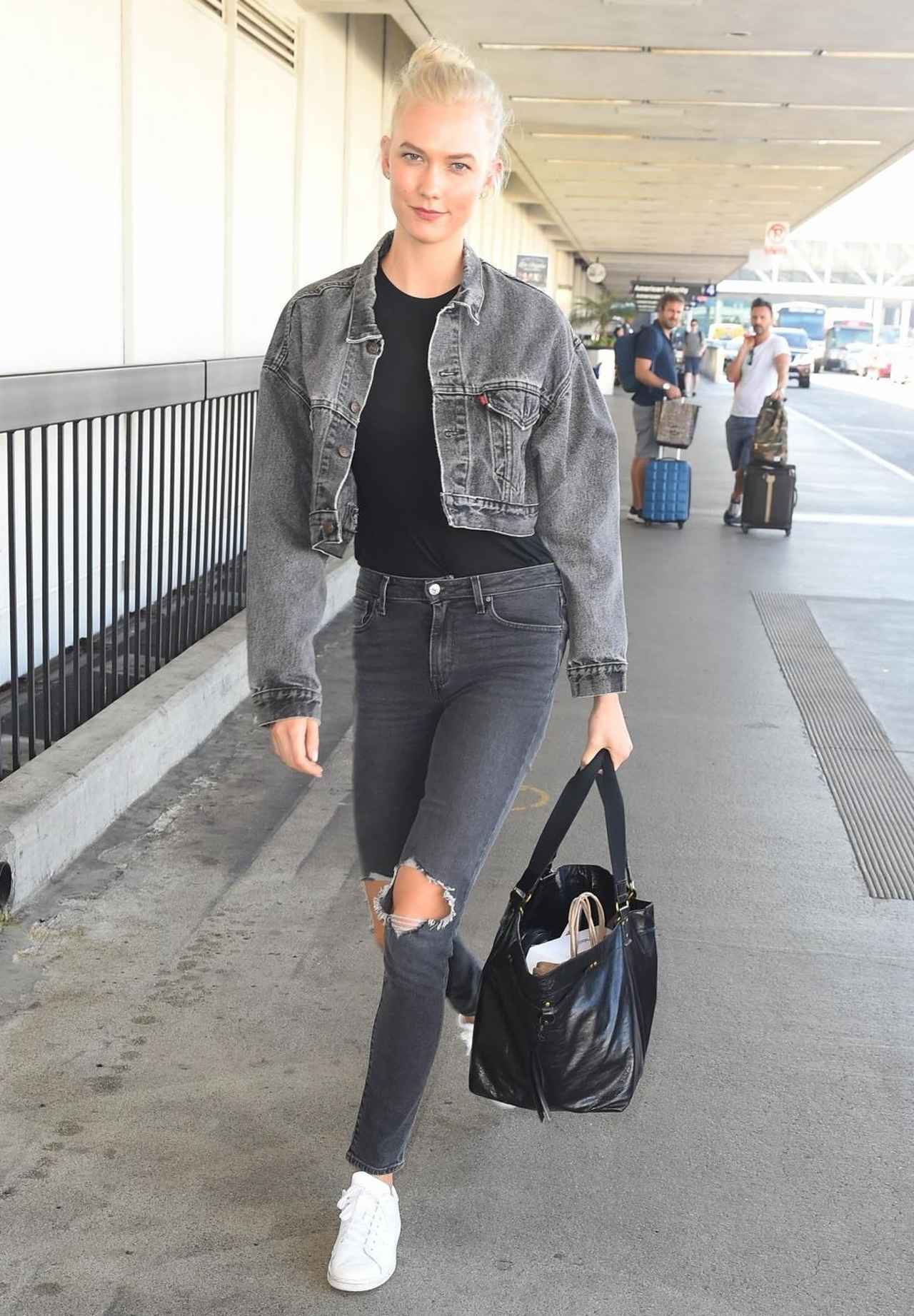 デニムジャケットにダメージデニムを合わせたデニムONデニムコーデに、Adidas(アディダス)のスタン・スミスでメンズライクなルックを作ったモデルのカーリー・クロス。