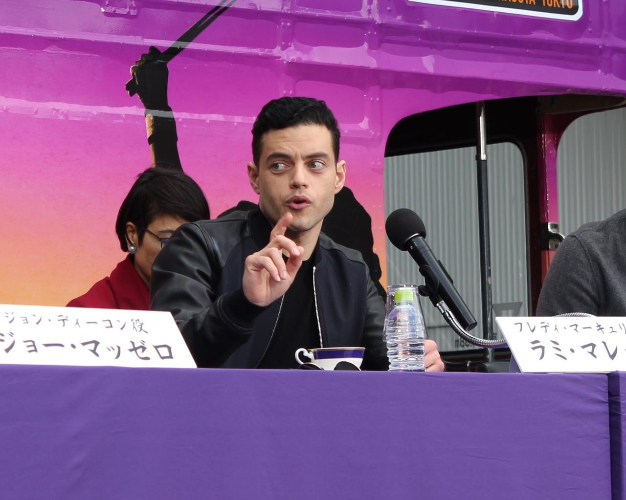 「東京に来られて映画をPRできて本当にうれしい。クイーンにとって日本は重要な場所。当時のメンバーがこれからすごいことが起きることを実感する国なんだ。クイーンは50回も日本公演を行ったし、彼らには日本人のDNAが備わっていると思うほど、日本文化は大きな影響を与えた場所なんだ」と、主人公のラミがクイーンにとって大きな意味を持つ日本に初めて来た気持ちを語った。