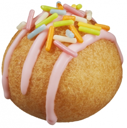 もちもち食感のポン・デ・リング生地に、ストロベリー風味のグレーズをコーティングし、カラースプレーと銀箔シュガーをトッピング。