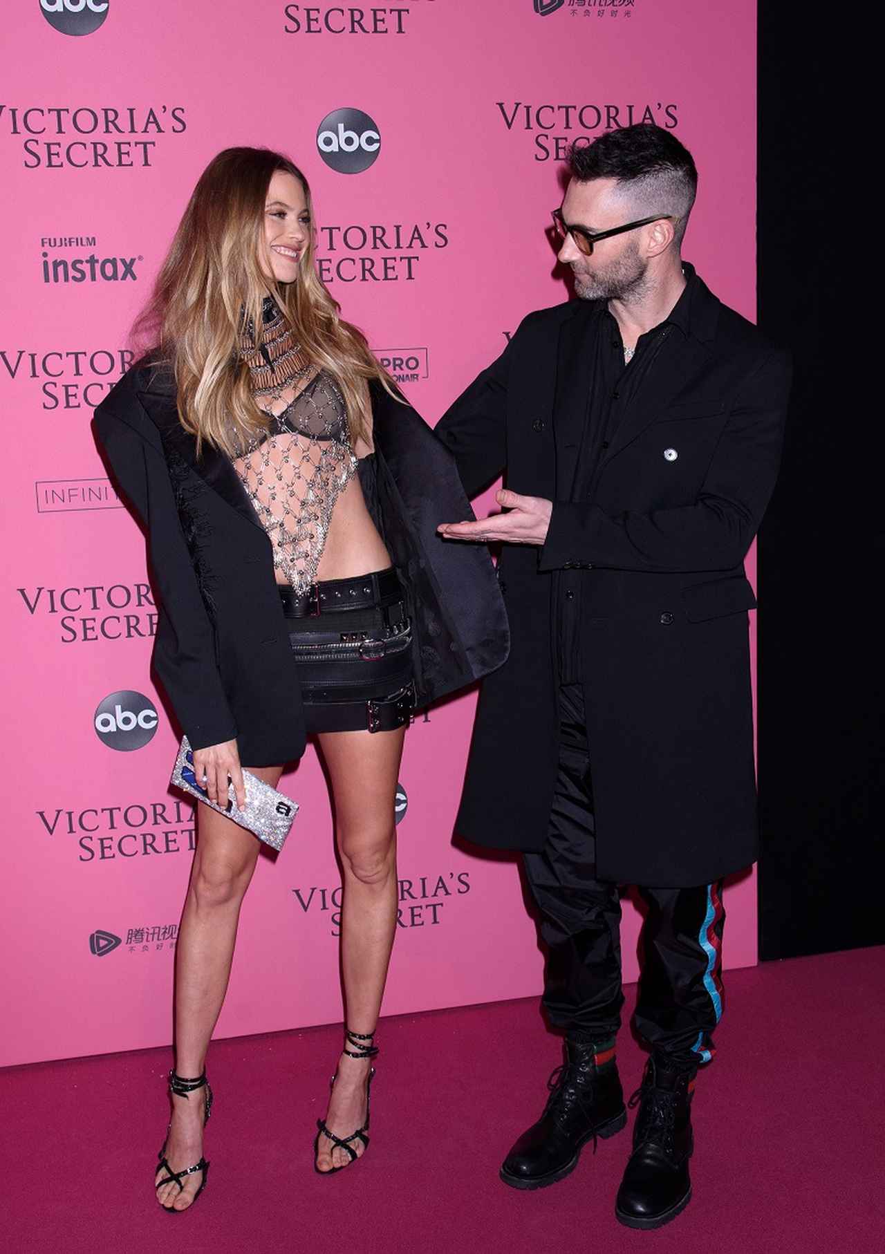 2年ぶりのショー復帰となったヴィクトリアズ・シークレット・エンジェル(以下ヴィクシーエンジェル)のベハティは、2014年に結婚したバンド、マルーン5のボーカル、アダム・レヴィーンとちょっぴりロックな大人の余裕を漂わせて。