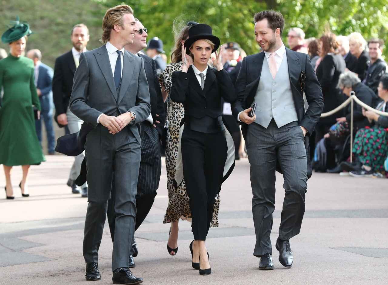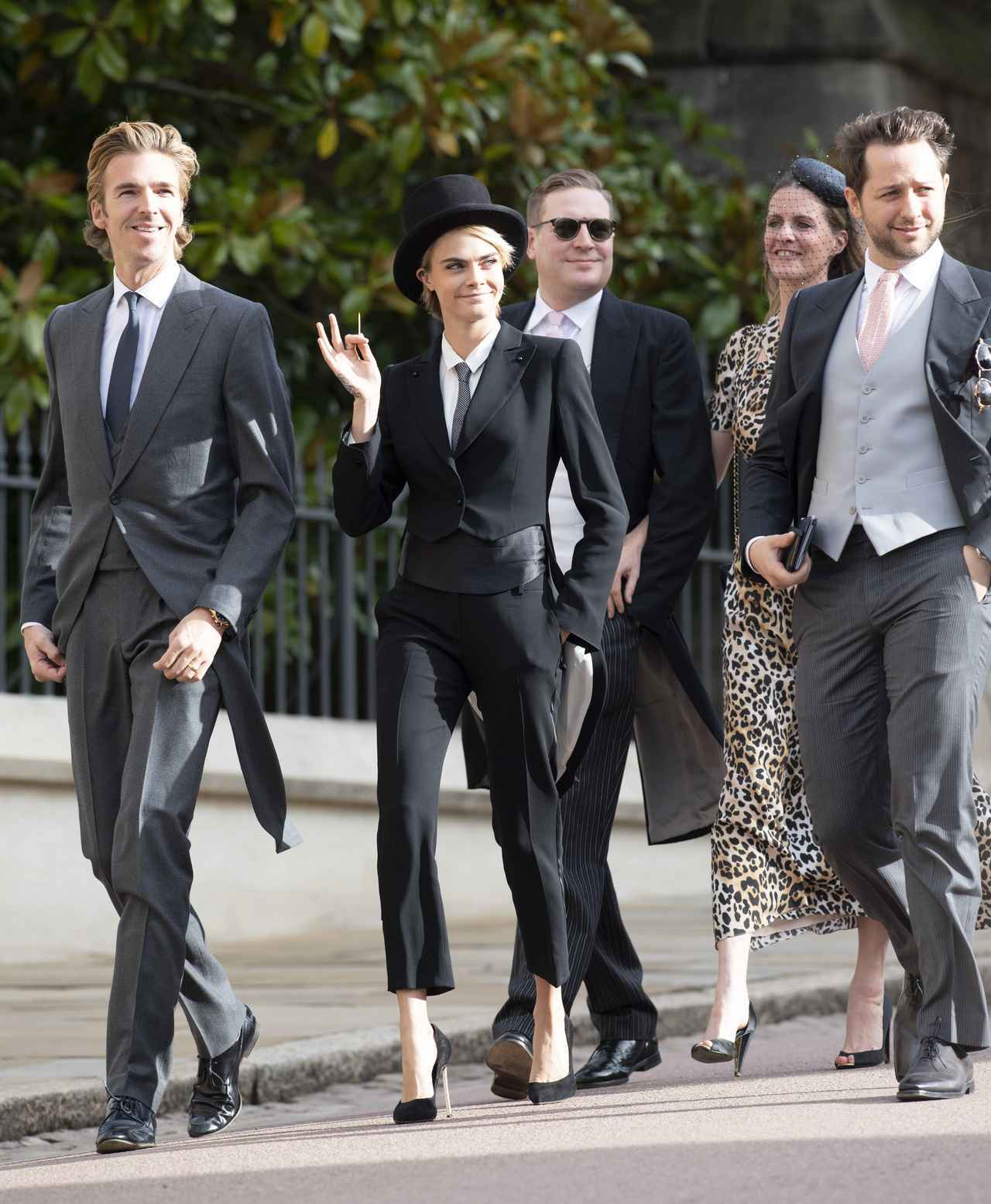 ロイヤル・ウェディングということで、ユージェニー王女の祖母にあたるエリザベス女王をはじめ、ウィリアム王子&キャサリン妃や、ヘンリー王子&メーガン妃などのロイヤルファミリーも出席した由緒正しい結婚式に、カーラはドレスではなくEmporio Armani (エンポリオ・アルマーニ)のタキシードを着用したことで大きな話題となった。