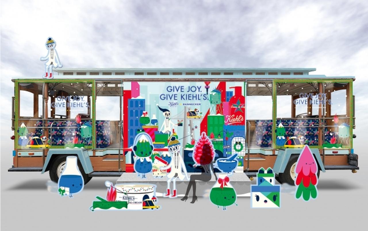 「キールズ “GIVE JOY” バス」 が街に登場し、バス自体がイベント会場に。イベント来場者にはハズレ無し。製品のミニサイズ等が隠された巨大アドベントカレンダーによるプレゼントや、来場者の大切な人には手書きのメッセージを添えてキールズからギフトが届くコンテンツも用意。
