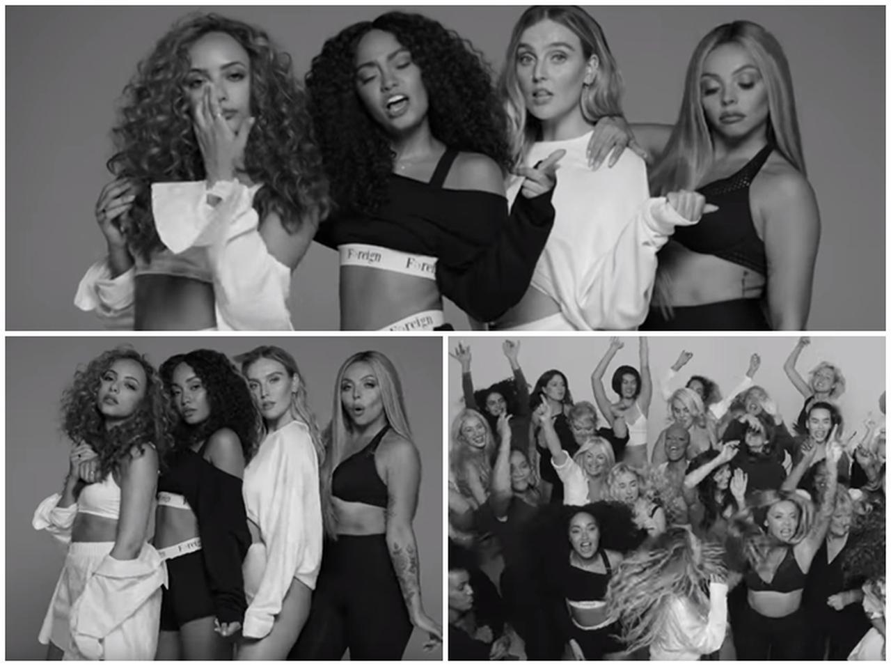 新曲「ストリップ feat. シャラヤ・J」のMVより、スペシャル・ビジュアル写真を公開したリトル・ミックス。初のヌード姿には、「Fat(デブ)」「Talentless(才能がない)」「Insignificant (大したことない)」などとネガティブワードが並べられている。