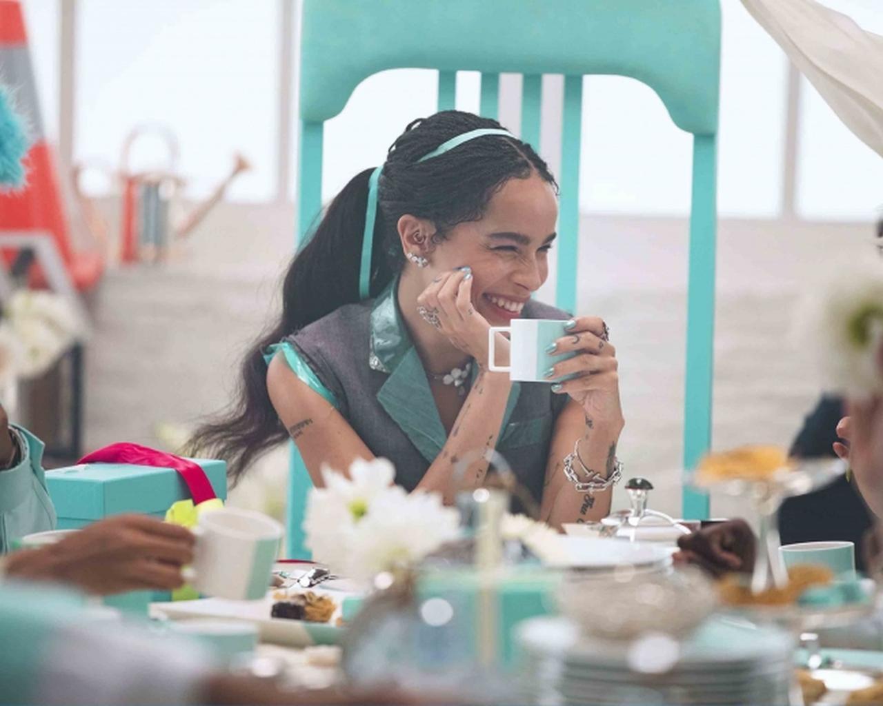ゾーイ・クラヴィッツは、現実世界から、ティファニーブルーにポップなネオンカラーが溢れる夢のような世界へと引きずり込まれる。