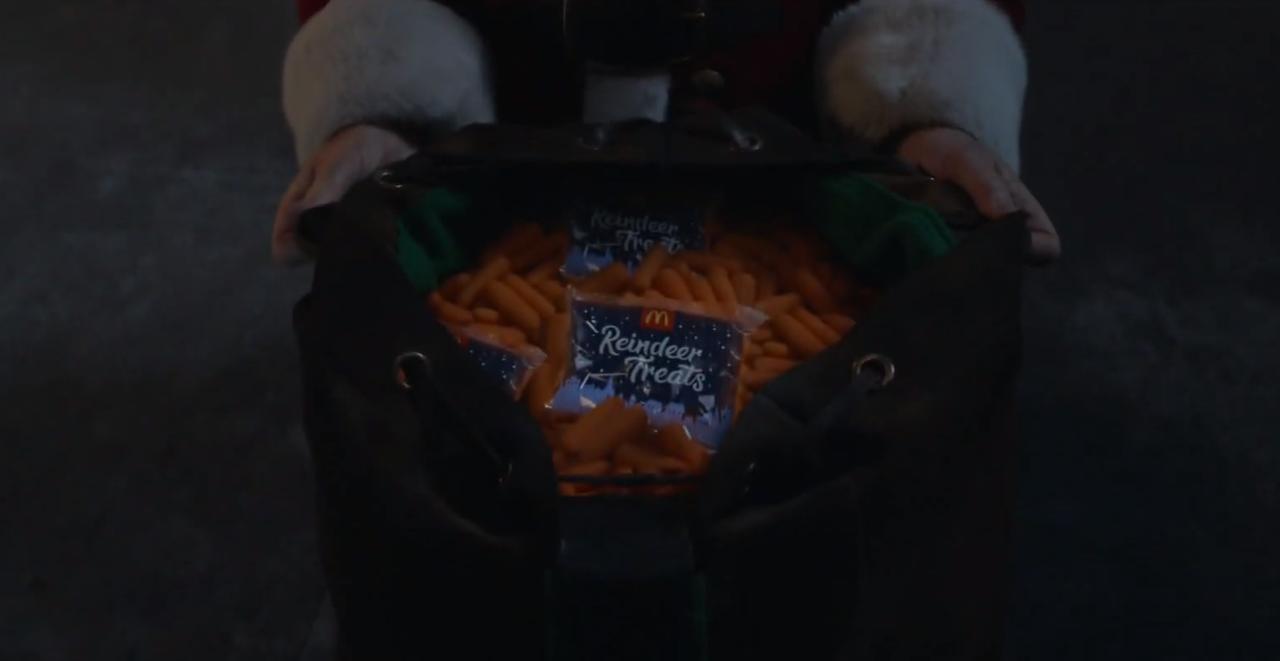 マクドナルドでゲットしたベビーキャロットをサンタクロースがトナカイたちにあげるシーンで終わるこの動画。