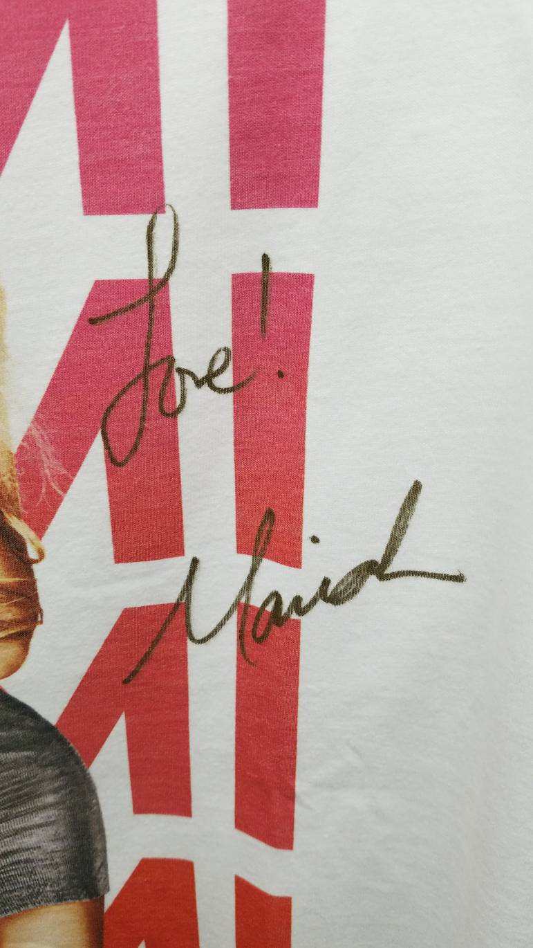 このTシャツはマライアが来日中にサインしたもので、Tシャツの胸元には「Love!Mariah」と入った超レアアイテム。