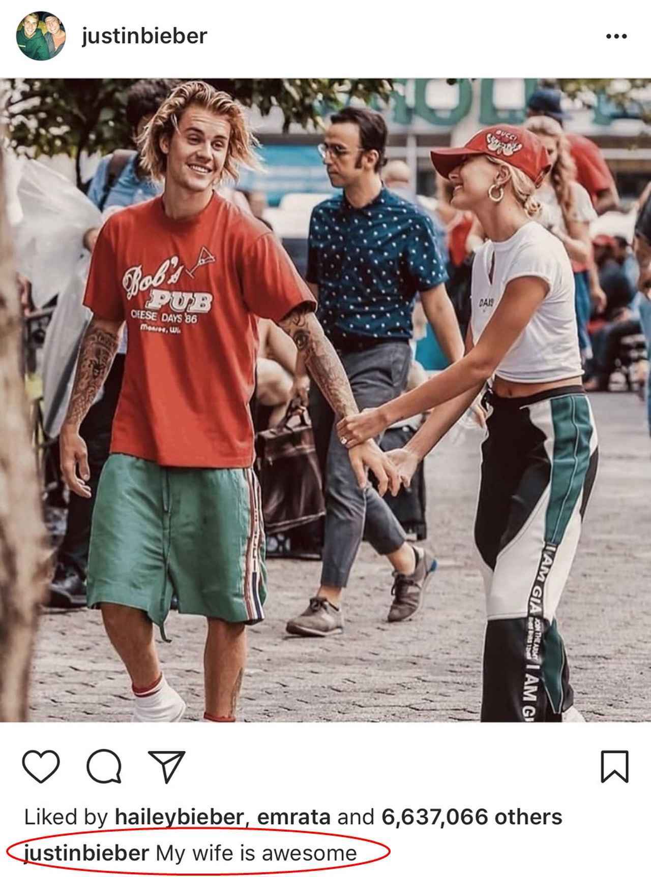 公式声明文などは出していないが、数日前にジャスティンがインスタグラムに投稿した写真の説明文のなかでヘイリーのことを「僕の妻(My Wife)」と表現したり、ヘイリーがインスタグラムのアカウント名を「ヘイリー・ビーバー」に変更したり、一応2人とも結婚したことを暗に認めている。