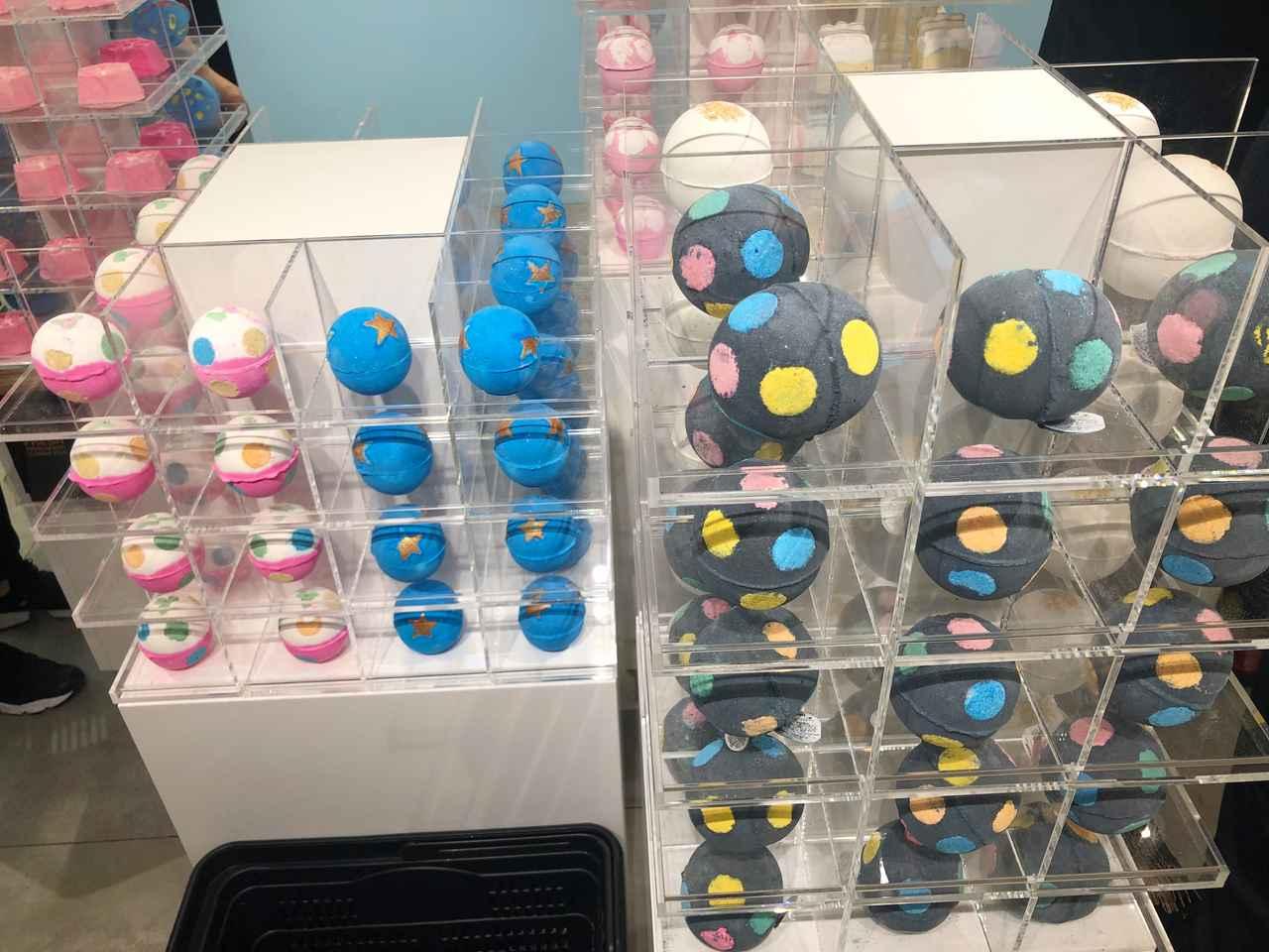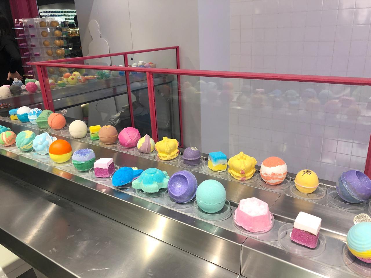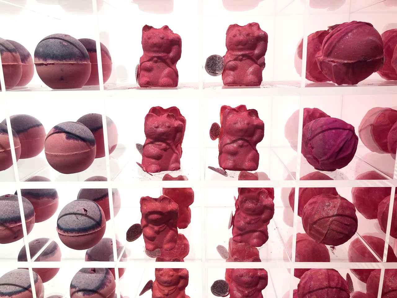 約9,000個というバスボムがあたり一面にディスプレイされ、見渡す限り右も左もバスボムという、まるでバスボムミュージアムのような世界観。