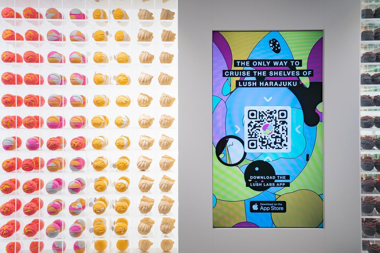 そして世界初のバスボムコンセプトショップ「LUSH原宿店」には、これまでのラッシュの店舗ではお決まりだった商品を試すための水やシンク、商品名を表示する掲示板などの姿がない。その代わりに登場したのが「Lush Labs アプリ」。