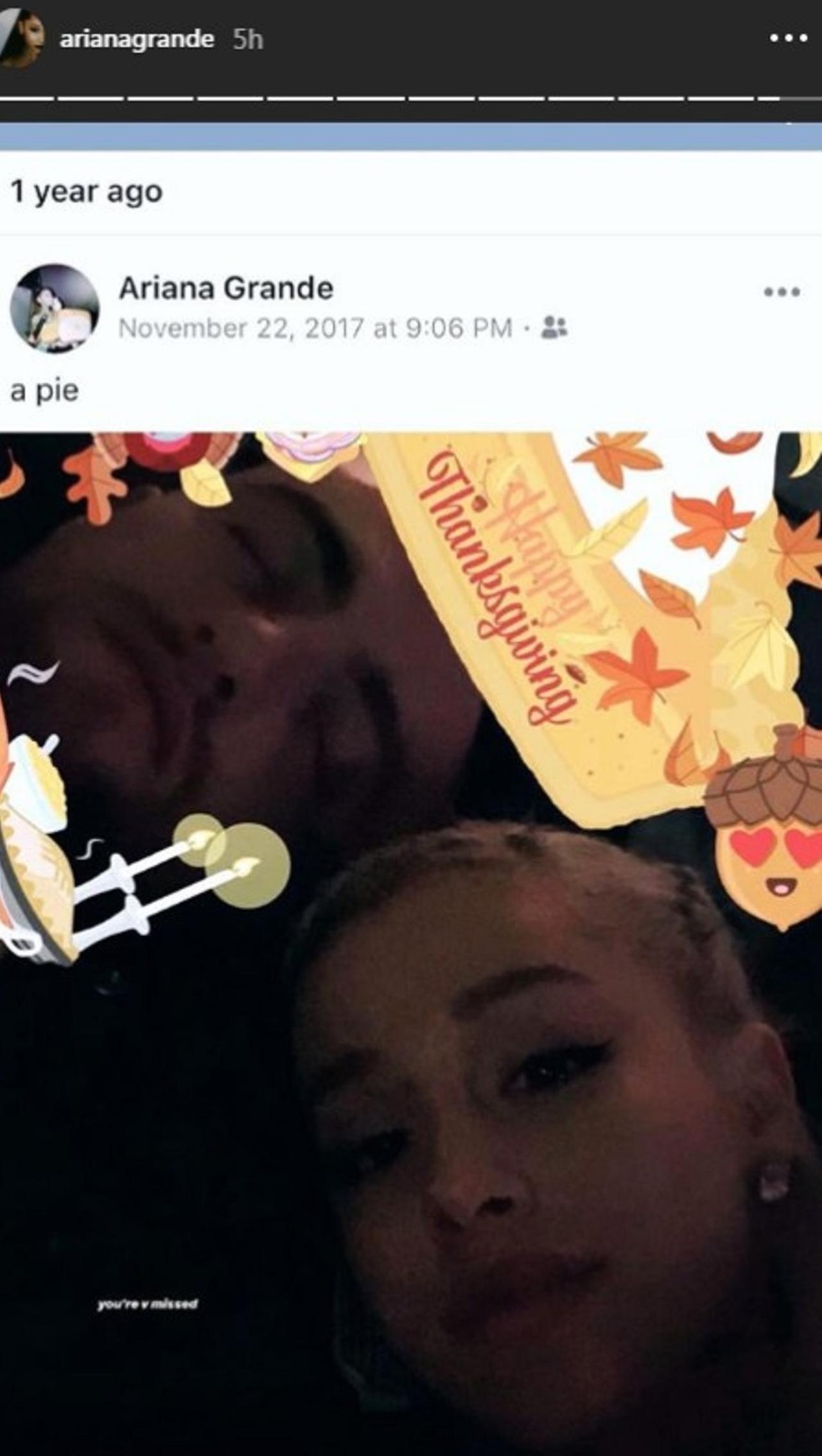 アリアナがインスタグラムストーリーで公開したのは、9月に急逝した元恋人でラッパーのマック・ミラーと2017年のサンクスギビング・デーに撮影したツーショット写真。