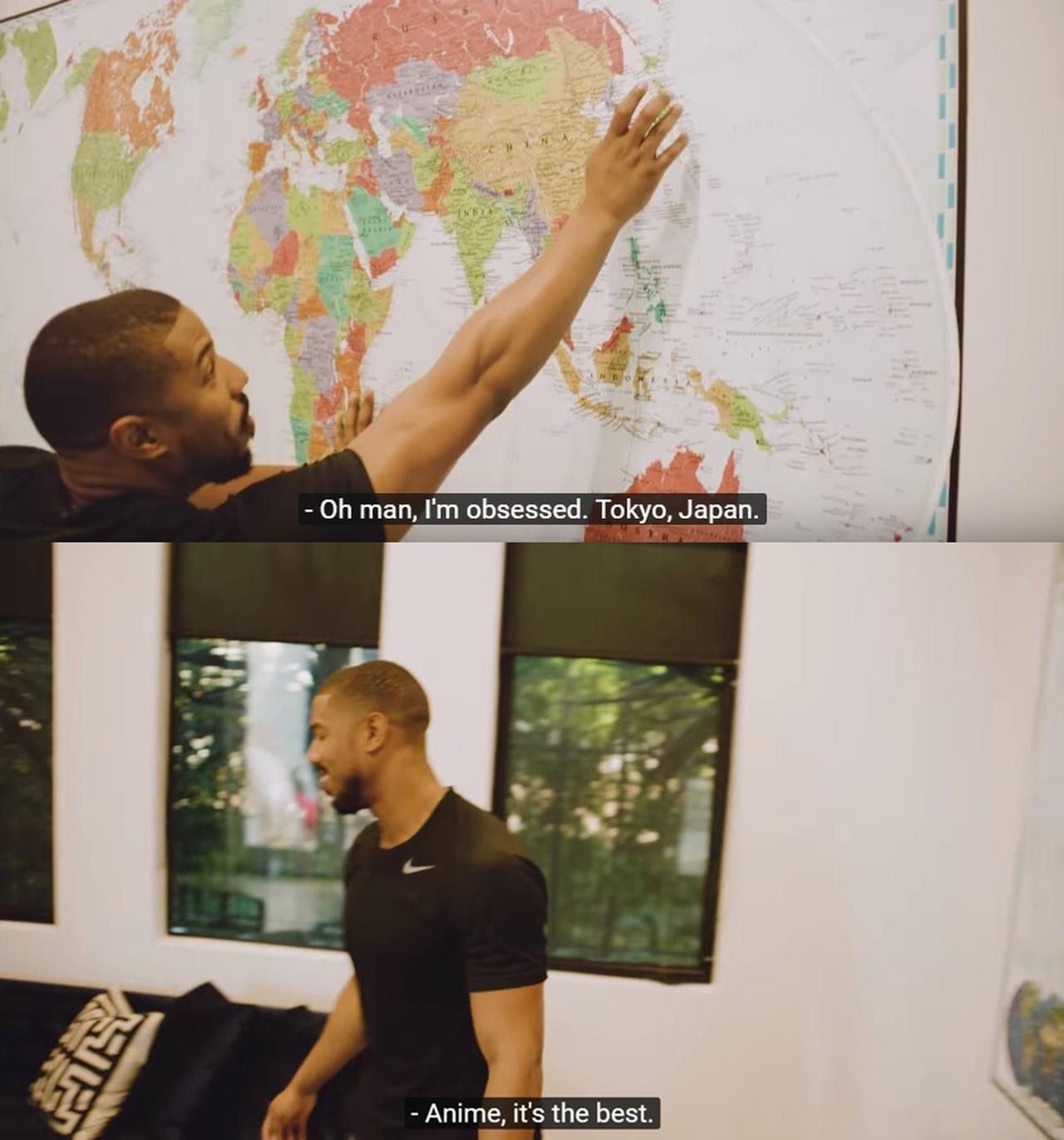 「まだ一度も日本に行ったことがないんだ。行くのが待ちきれないよ。僕は日本文化の大ファンなんだ。たくさんアニメを見て育った。日本のアニメが描いているのは、家族だ。家族や絆、約束、“アンダードッグ”(勝ち目のない人)が頑張ることをとても大事にしている。それらはすべて、『クリード』シリーズの中でアドニスが体現していることだと思う。彼はとても長いあいだ、アンダードッグだったんだ。それに彼は、家族や約束、大事な人との関係を大切にしている。そして、なにより『決してあきらめない』という強い思いを持っている。それは、世界の誰もが、とくに日本の人たちが、共感できることだと感じるよ。そういうものをこの作品で表現したいと思ったんだ」