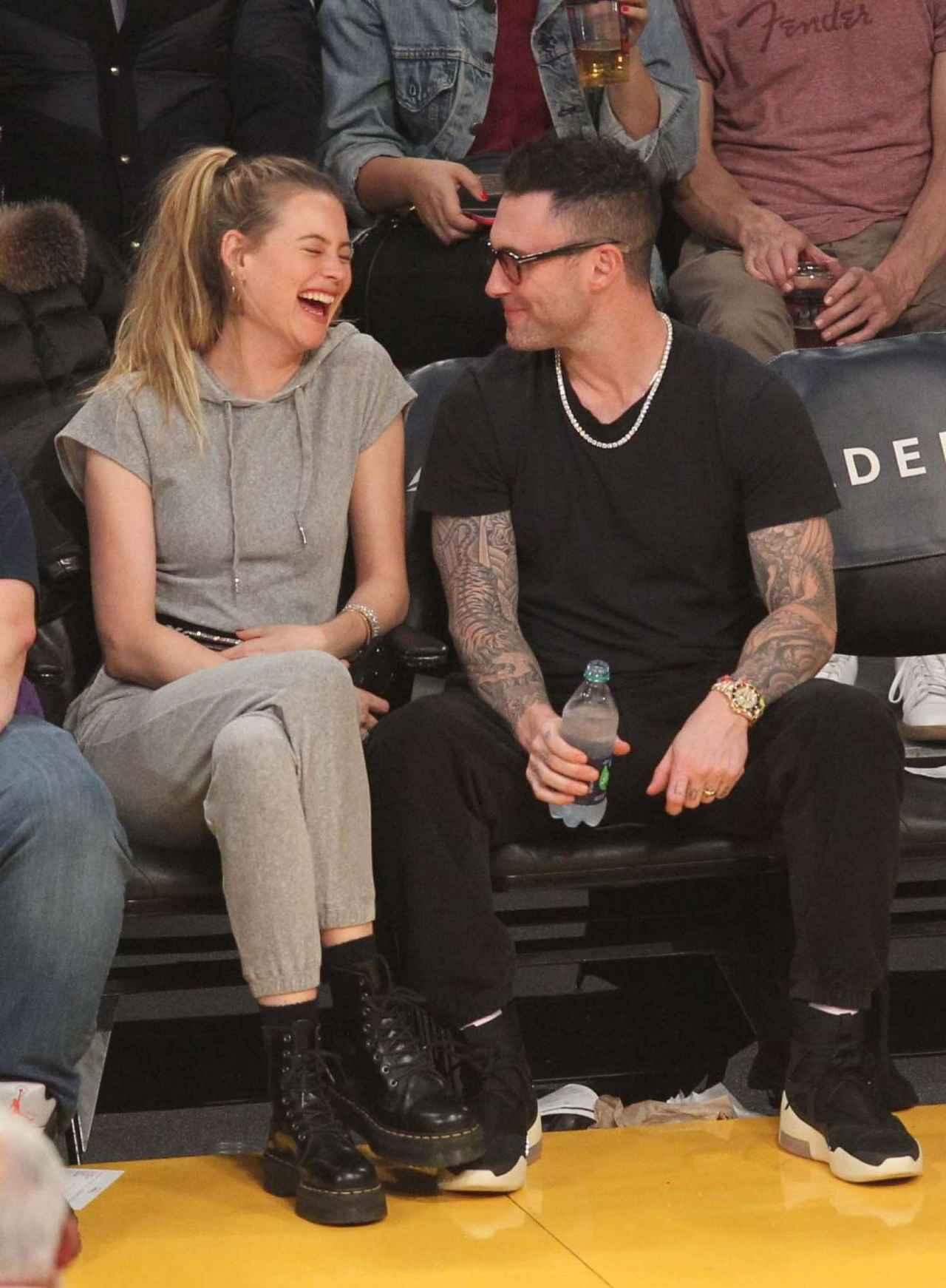 ロサンゼルスで開催されたロサンゼルス・レイカーズの試合観戦デートに向かった、人気モデルのベハティ・プリンスルーと、マルーン5のボーカル、アダム・レヴィーンの仲良しカップル。
