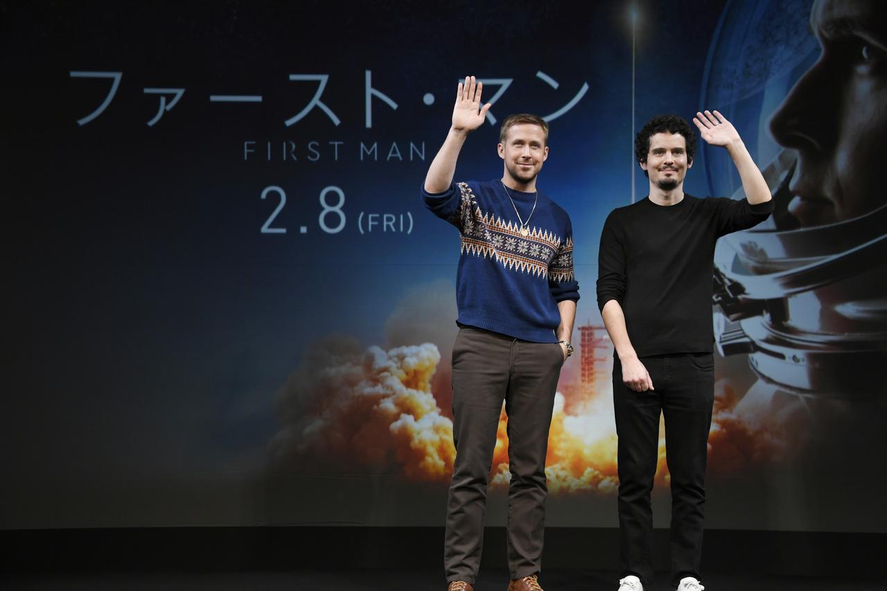 2019年2月8日に日本公開される映画『ファースト・マン』のPRで、主演のライアン・ゴズリングとデイミアン・チャゼルが来日。