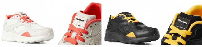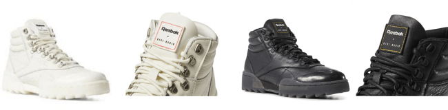 リーボックの90年代初期のオフロード・ランニングシューズの名作である「AZTREK」も「FREESTYLE HI NOVA RIPPLE GIGI」同様に白と黒の2つのカラーリングでデザイン。流行のレトロなシルエットに加えて、素材に遊びを効かせ、レザーのオーバーレイや秋冬らしいディテールを加えている。
