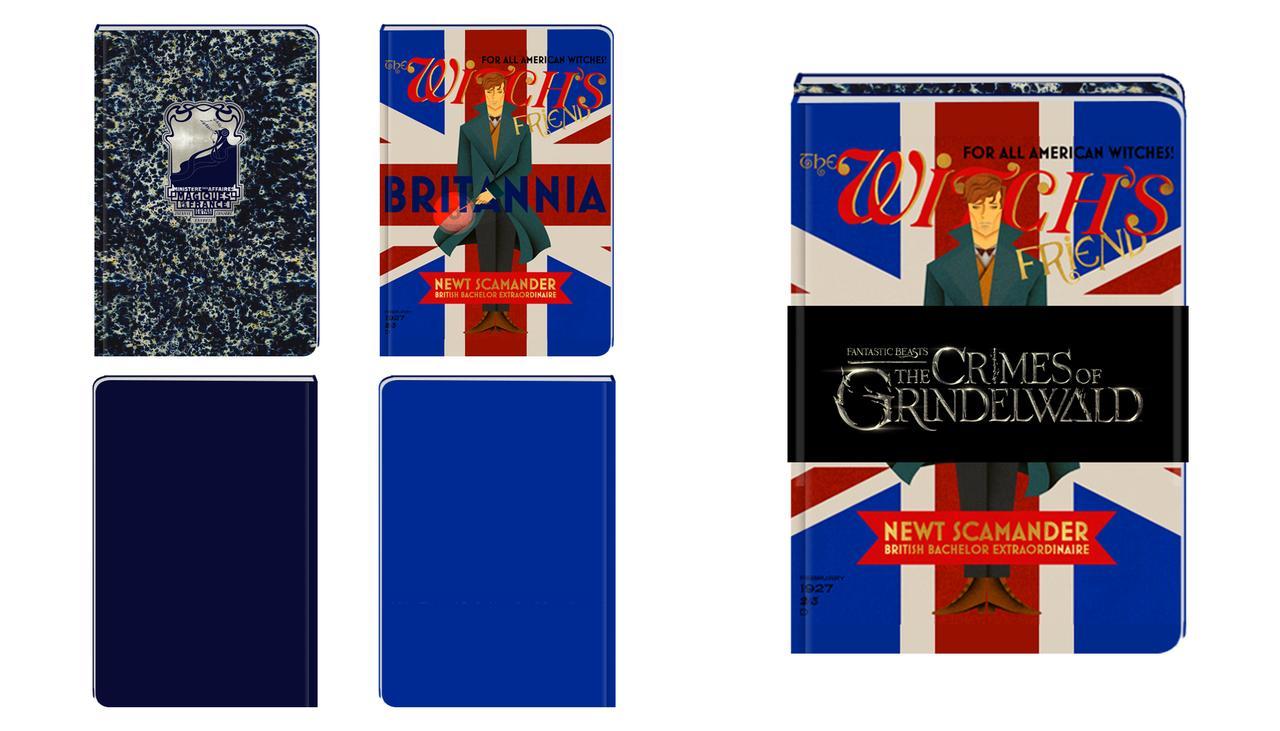 ハードタイプのノートブックは、イギリスの国旗を背景に、本作の主人公エディ・レッドメイン演じるニュート・スキャマンダーのイラストが描かれたものと、フランス魔法省のデザインが描かれたネイビーがシックなデザインのものの2種類。