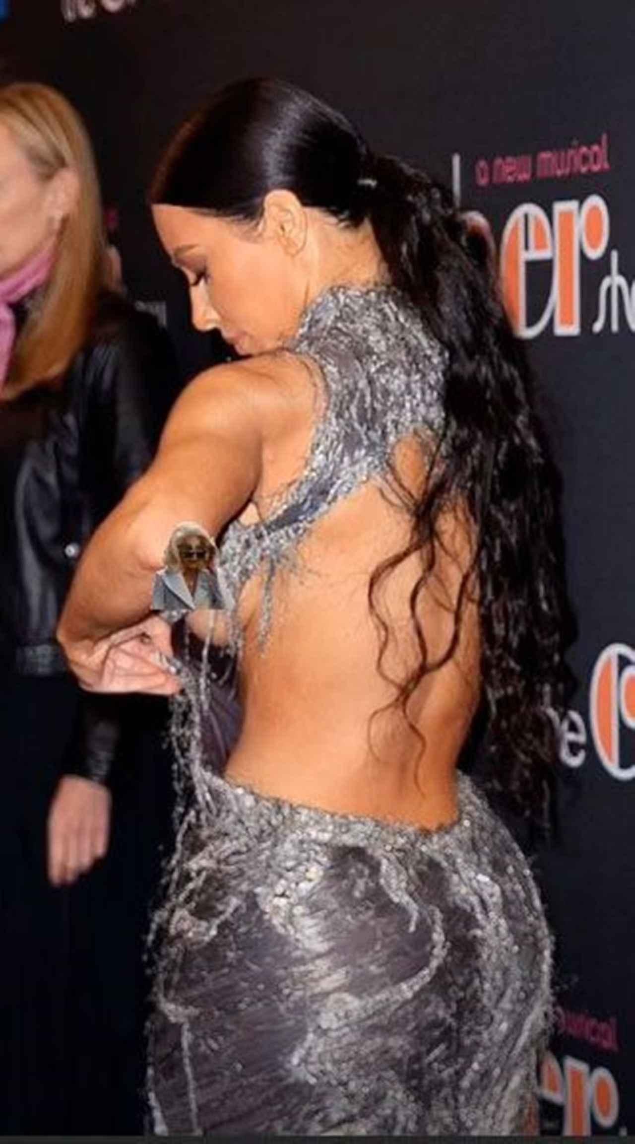 露出度高めの服装をすることが多いキムは、この日も背中が大胆に開いたシルバーのドレスを着ていたのだが…。