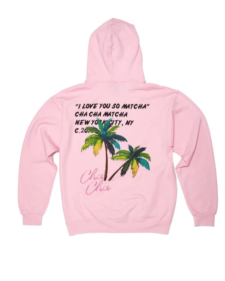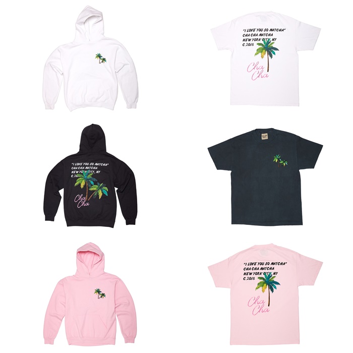 さらに、ファンにとって最も興味深いであろうアパレルは、西海岸をイメージしたパームツリーのデザインに、「I LOVE YOU SO MACHA/アイ・ラブ・ユー・ソー・マッチャ(※Much/マッチを文字って)」というフレーズが書かれたTシャツとフーディー(各色:ホワイト・ブラック・ピンク)を用意。