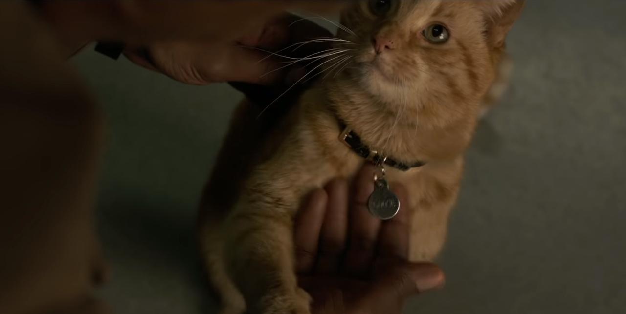 そんな疑惑のシーンは、最新予告編の最後。ある建物の中にいるブリー・ラーソン演じるキャロル・ダンバース(キャプテン・マーベル)とニック・フューリーが、猫と戯れるシーン。