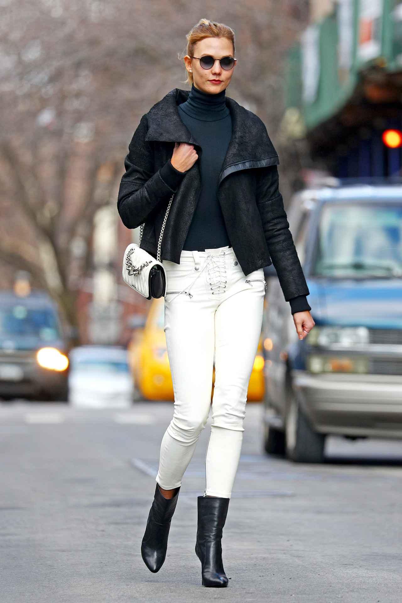 トップモデルのカーリー・クロスはこの冬、ホワイトのスキニーデニムを履きまわして愛用中。手持ちのアイテムで、デニムルックの雰囲気を変えたカーリーの着こなしを拝見!(フロントロウ編集部)